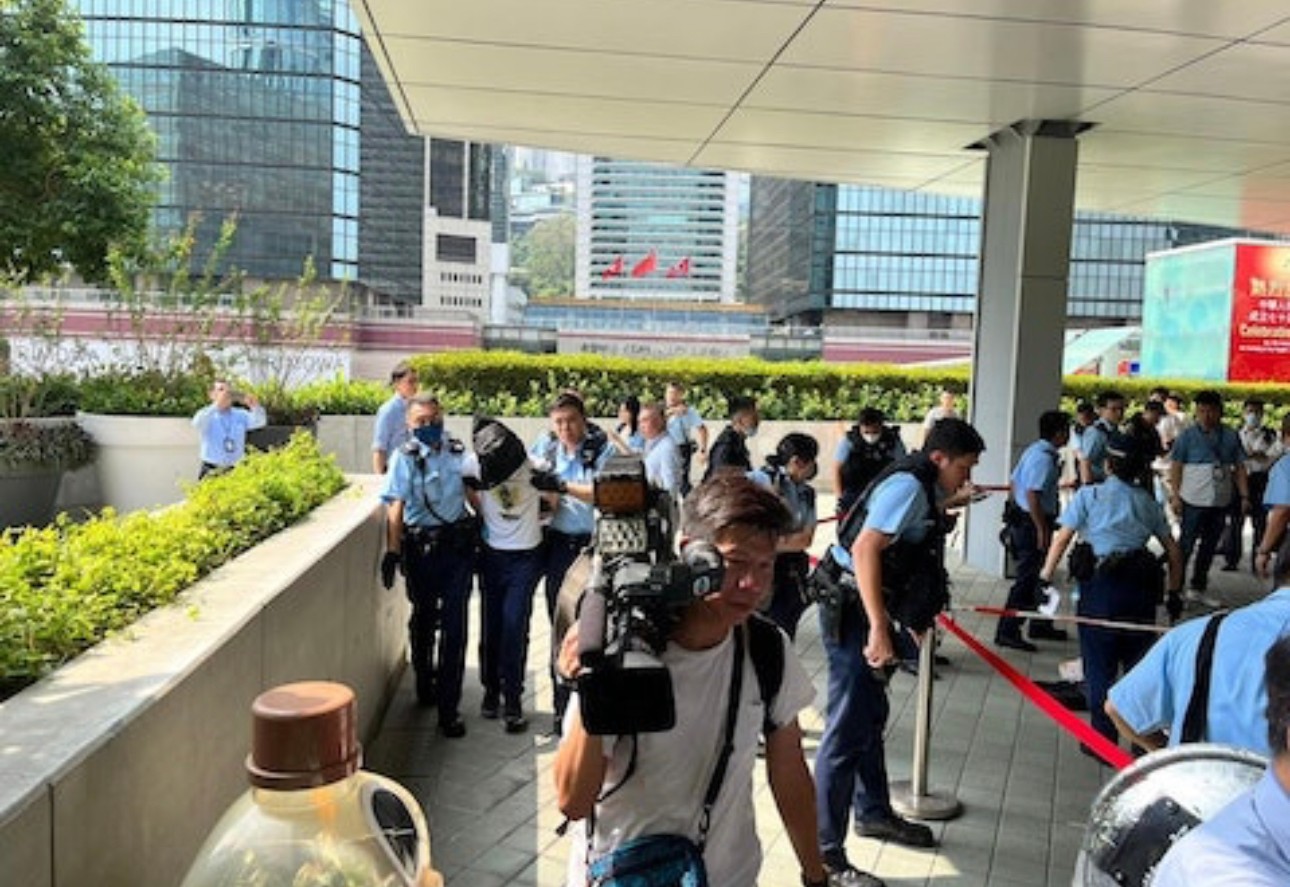 金鐘政府總部對出的行人天橋今日(4日)發(fā)生持刀傷人事件。上午10時許,一名男子於金鐘添馬添美道2號政府總部門外的行人天橋持刀襲擊保安,其中2名保安分別手部被割傷及腳部扭傷。該名男子當場被途人及保安制服。