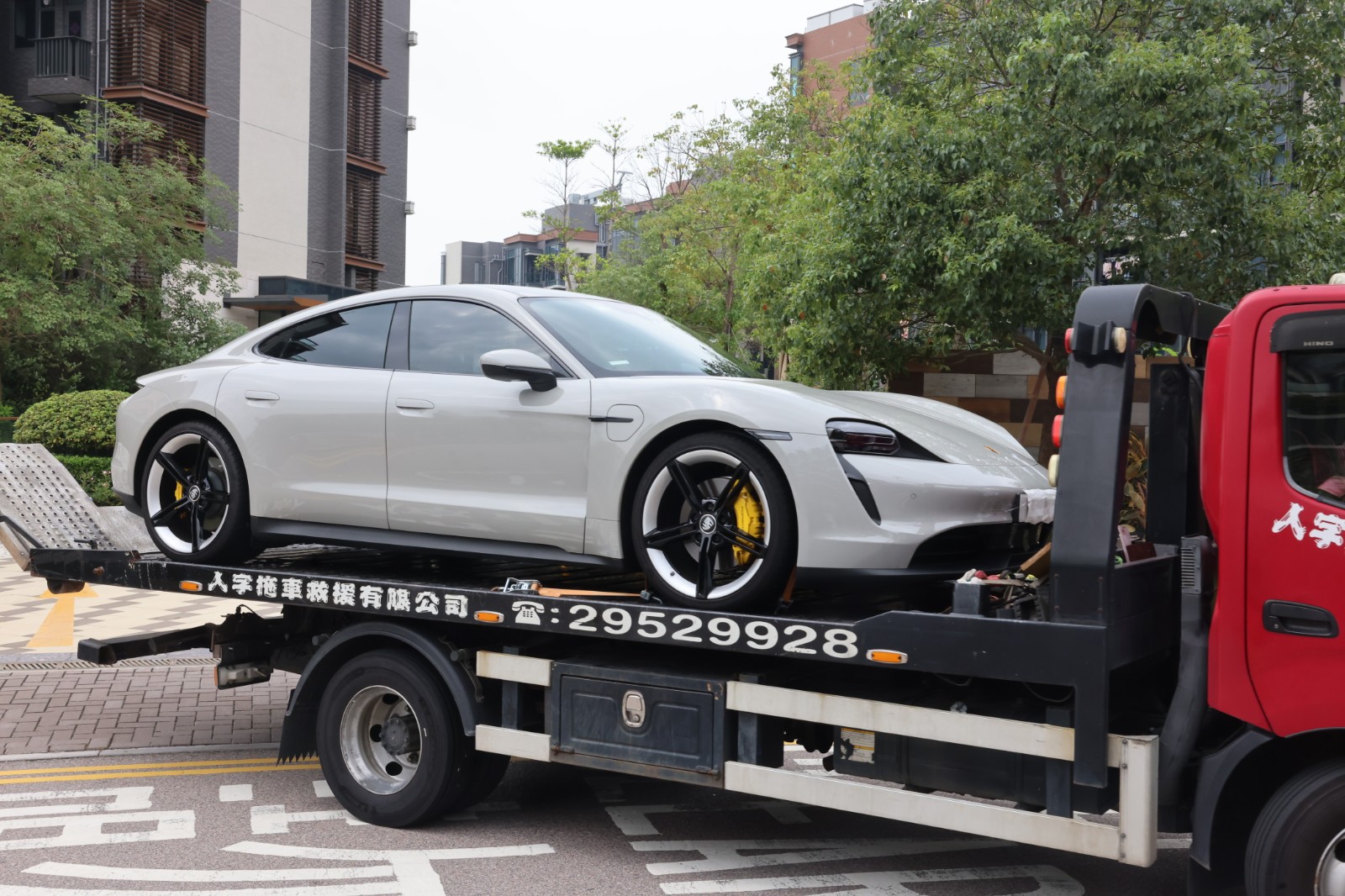探員在屯門滿名山拘捕一名男子,並拖走一輛保時捷。