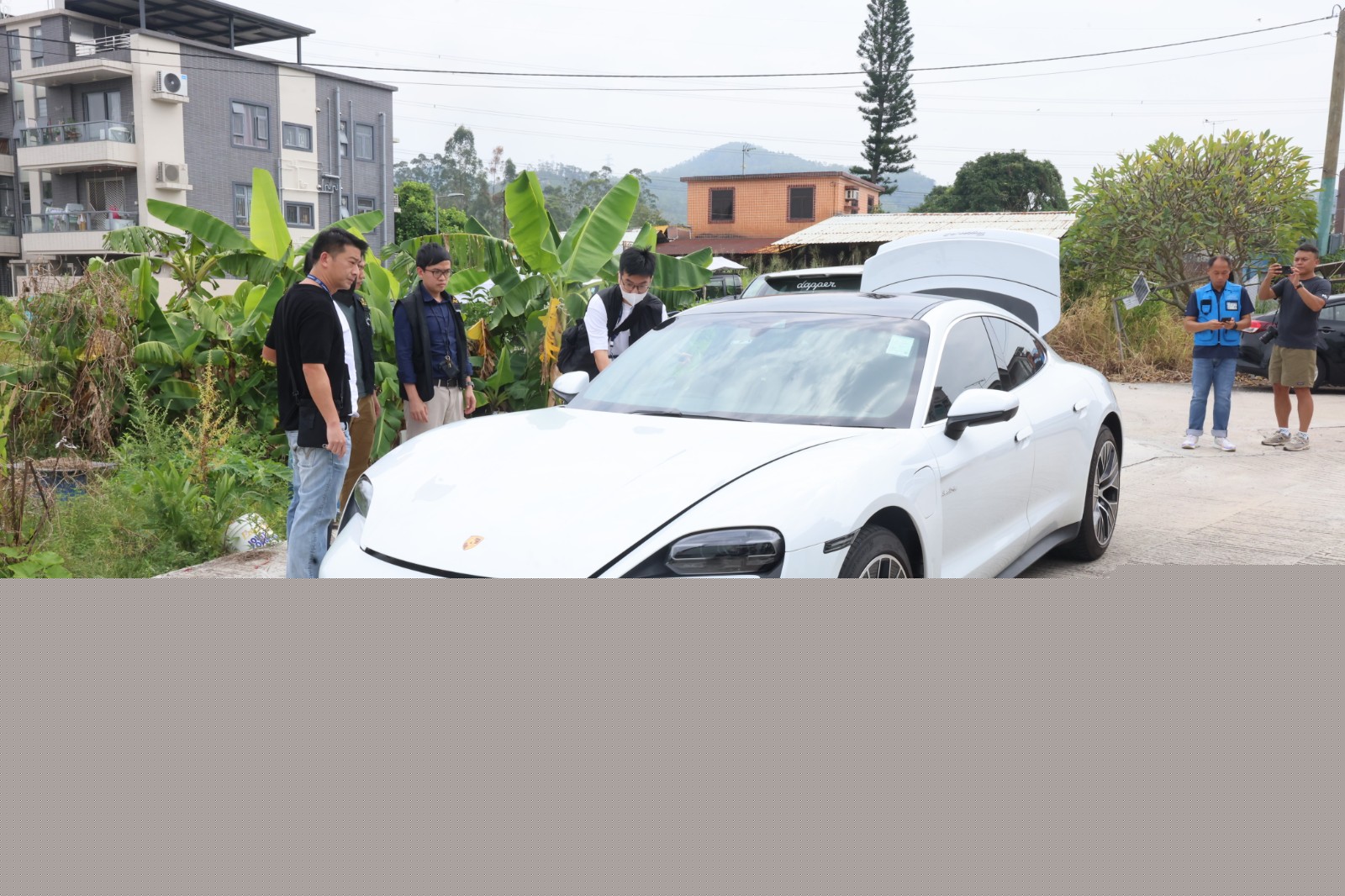 警方在元朗大棠南坑村拘捕無綫電視藝員鄭雋熹,並在一輛保時捷跑車內(nèi)搜證。