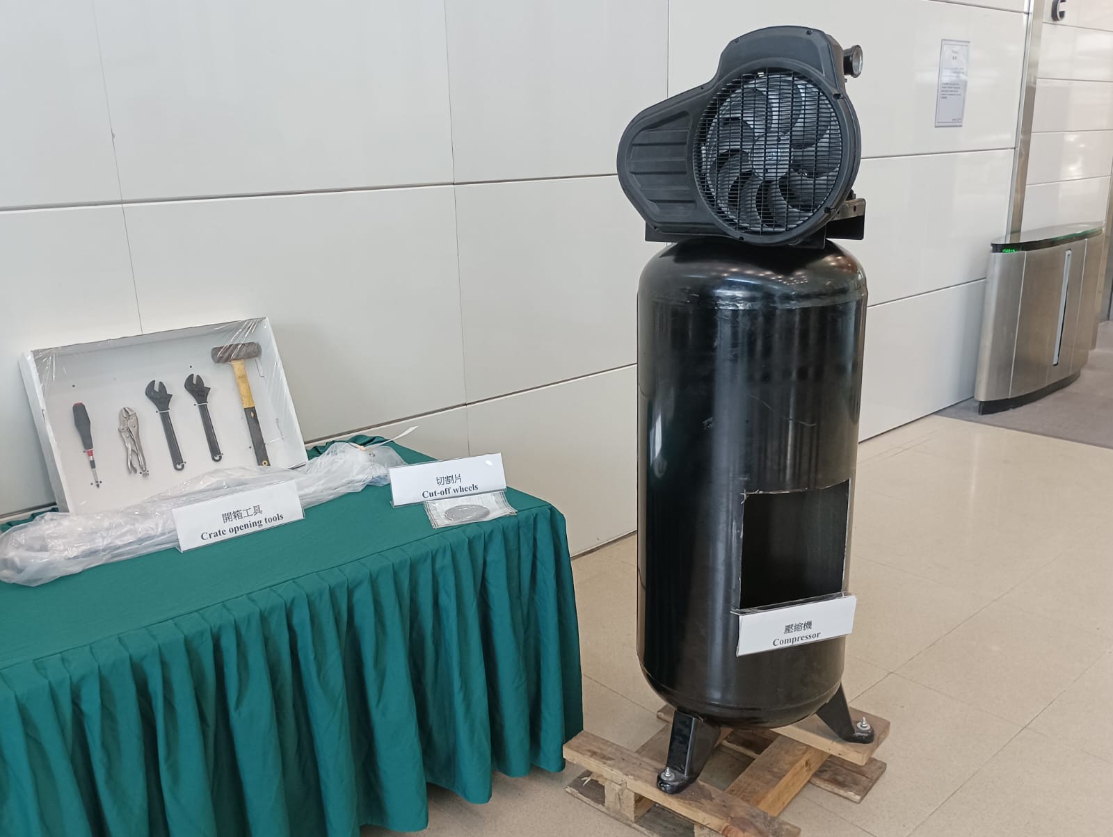 海關(guān)毒品調(diào)查科機(jī)場(chǎng)調(diào)查課高級(jí)調(diào)查主任曾宥銓今日(5日)表示,在上月27日人員在機(jī)場(chǎng)根據(jù)風(fēng)險(xiǎn)管理,抽檢一件由美國(guó)入口、報(bào)稱載有空氣壓縮機(jī)的貨物,在X光掃描下發(fā)現(xiàn)影像有異,打開(kāi)載貨木箱後,機(jī)械頂部有明顯重新縫合和上油痕跡,引起人員懷疑,拆開(kāi)機(jī)械後檢獲20公斤大麻花,全部以真空包裝。