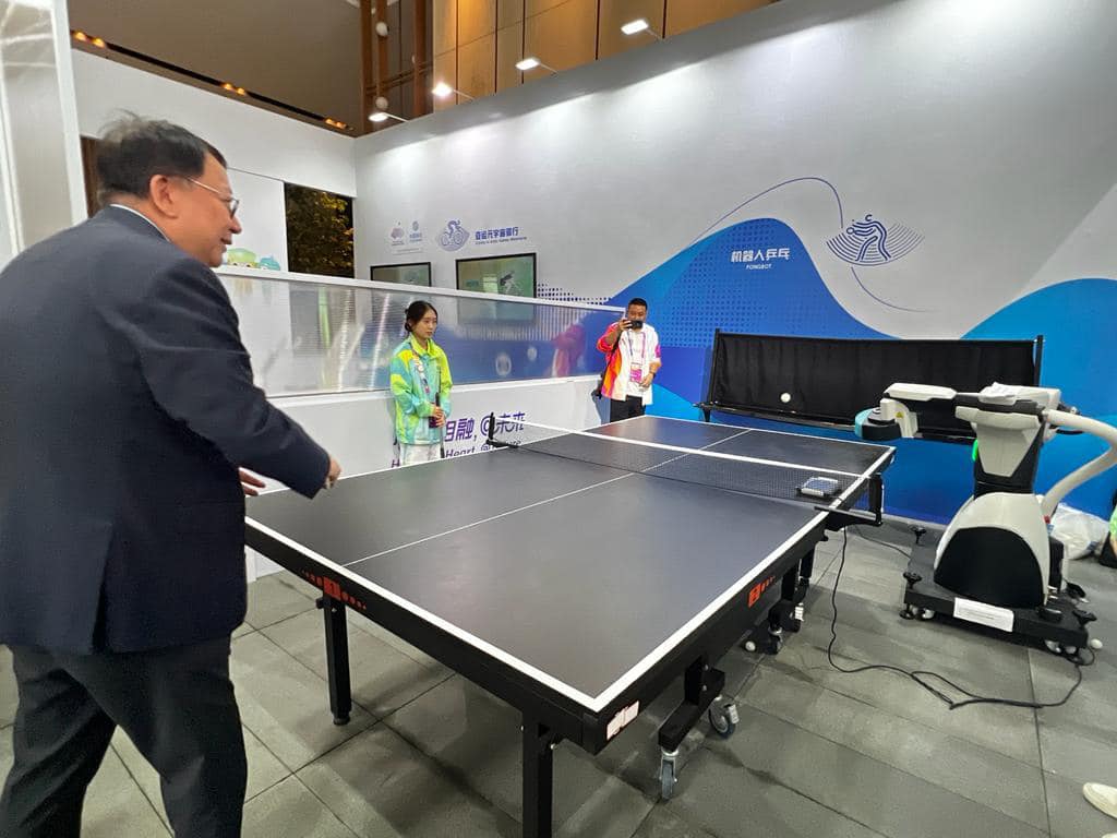 離開運(yùn)動(dòng)員村前,陳國(guó)基也體驗(yàn)了村內(nèi)一些先進(jìn)設(shè)施,包括在「3D打印·元宇宙體驗(yàn)艙」即場(chǎng)一試打印3D象棋朱古力,並跟「機(jī)械人乒乓」「對(duì)打」數(shù)板。他說(shuō),相信這些設(shè)施都是住在村內(nèi)各地運(yùn)動(dòng)健兒的「打卡點(diǎn)」,為他們的賽後日常生活增添一點(diǎn)樂趣。
