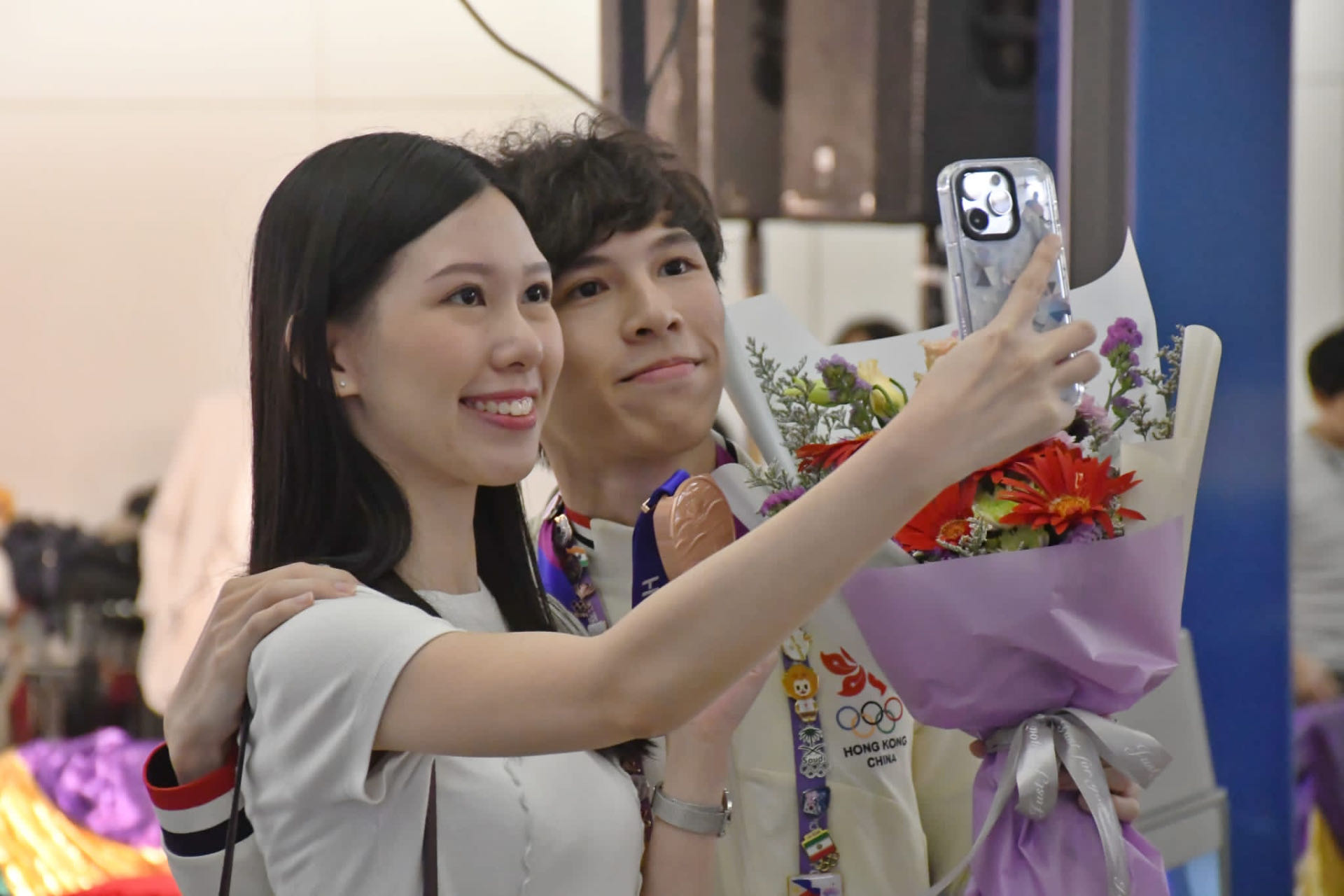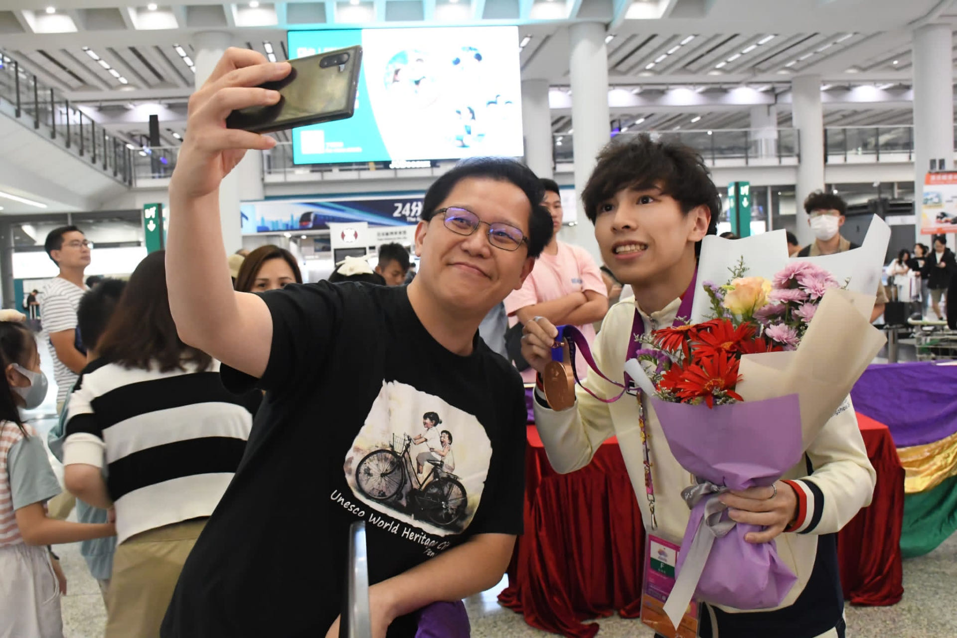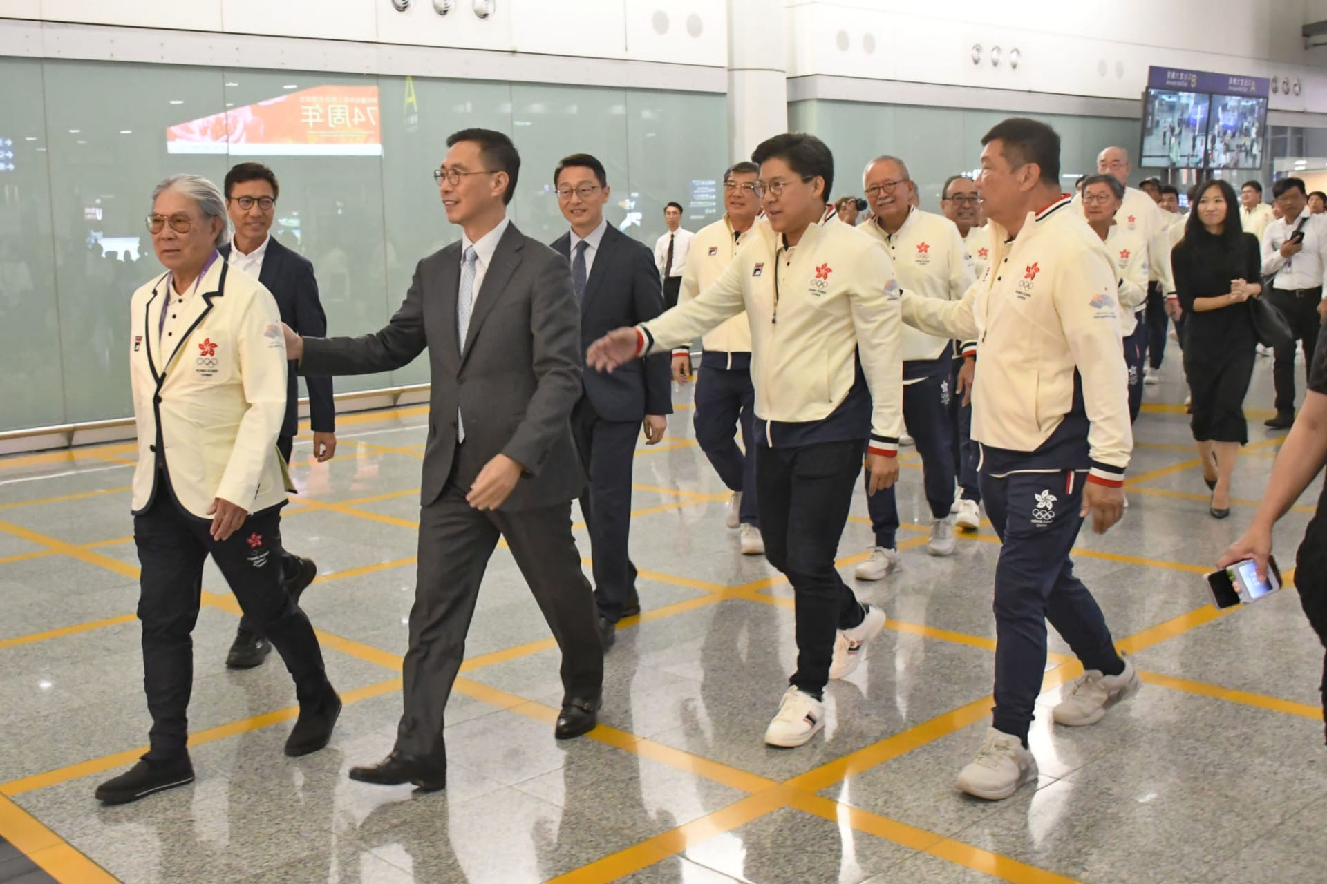 政務(wù)司副司長(zhǎng)卓永興、文化體育及旅遊局局長(zhǎng)楊潤(rùn)雄、康樂及文化事務(wù)署署長(zhǎng)劉明光、中國(guó)香港體育協(xié)會(huì)暨奧林匹克委員會(huì)(港協(xié)暨奧委會(huì))會(huì)長(zhǎng)霍震霆、港協(xié)暨奧運(yùn)會(huì)副會(huì)長(zhǎng)及中國(guó)香港代表團(tuán)團(tuán)長(zhǎng)霍啟剛,以及體育專員黃德森等到場(chǎng)迎接。
