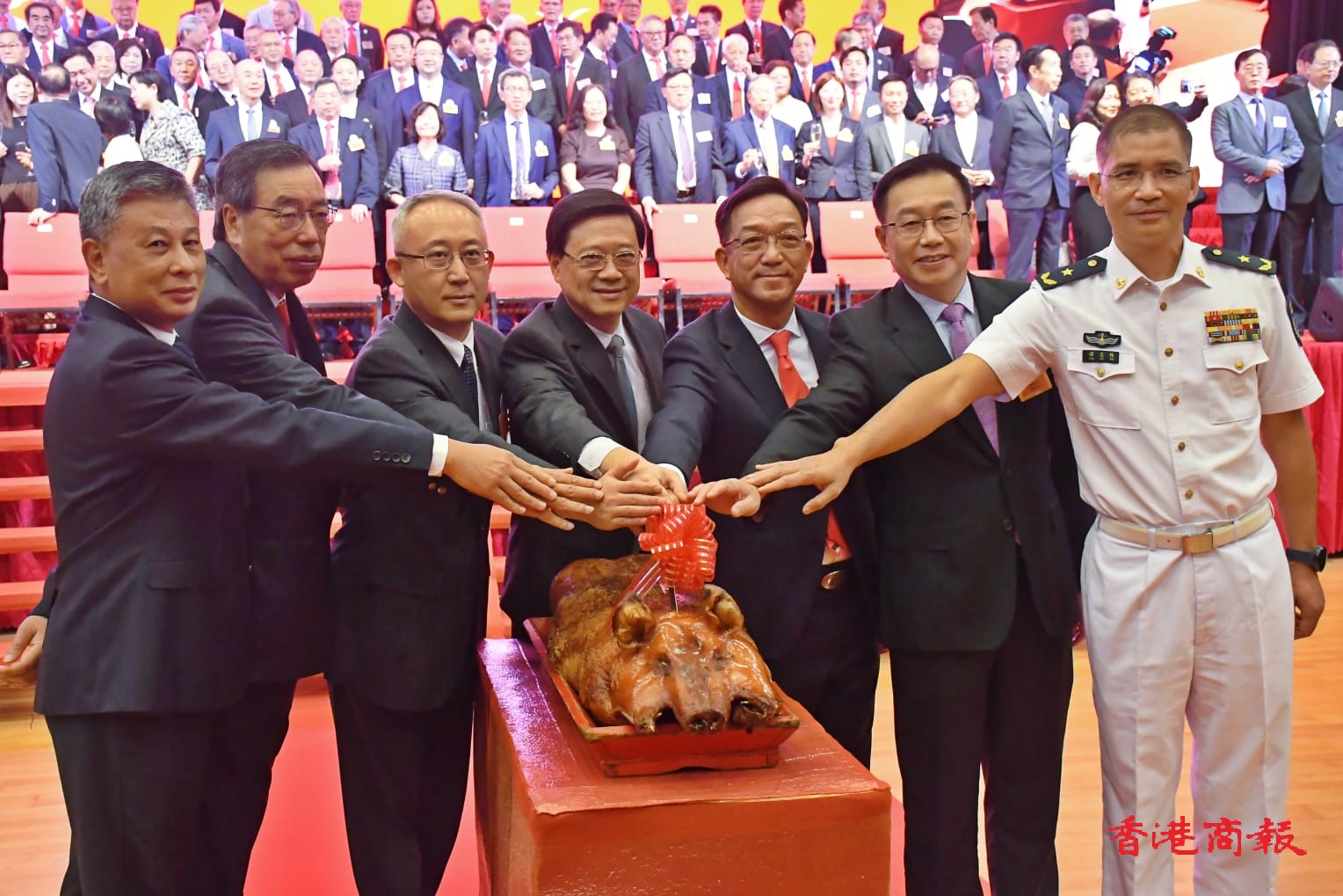 除了鄉(xiāng)議局主要領(lǐng)導(dǎo)層外,擔(dān)任主禮嘉賓的還有中聯(lián)辦副主任何靖,外交部駐港特派員公署署理特派員李永勝、駐港部隊(duì)副司令員譚志偉、中央駐港國(guó)安公署副局長(zhǎng)王文獻(xiàn),多位特區(qū)官員及立法會(huì)議員等。(記者:李銘欣 / 攝影:馮瀚文)