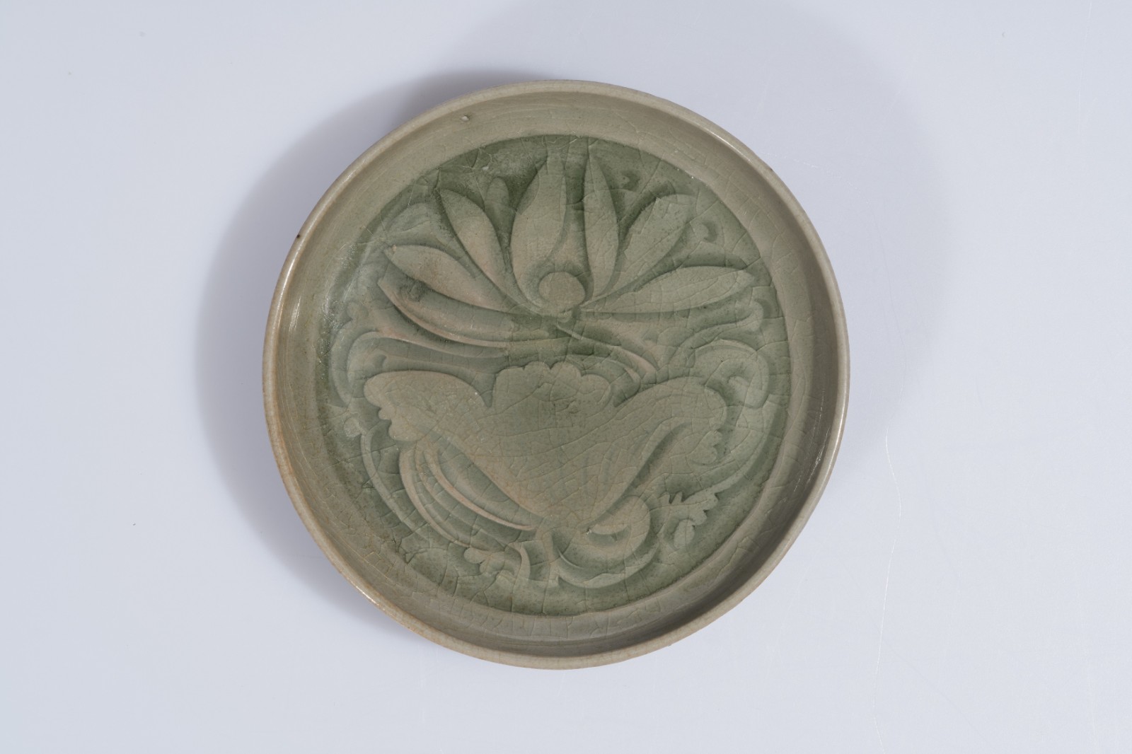 青釉刻花蓮荷紋盤,金代(中晚期)。