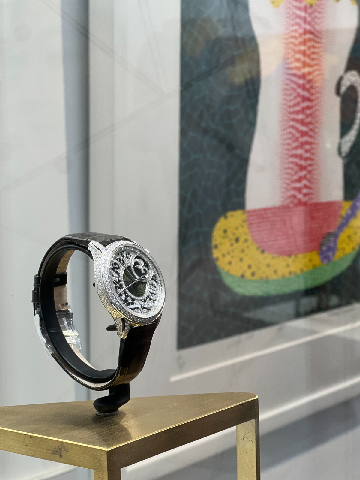 女性藝術(shù)家的創(chuàng)作越來越受大眾的關(guān)注。從草間彌生的波點世界到喬治亞·歐姬芙的大膽抽象畫作,她們以獨特的視角和感性詮釋世界,締造了無數(shù)令人驚艷的作品。香港一江詩丹頓與富藝斯拍賣行攜手合作,早前於西九文化區(qū)舉辦名為「LESS’ENTIAL - Art of Our Times」的展覽,以致敬女性、藝術(shù)和時間為核心,並以女性為主題,展示了一系列女裝時計及當代女藝術(shù)家的作品。 展覽現(xiàn)場展出品牌女性腕表以及女性藝術(shù)家畫作。 éGéRIE月相腕表靈感來自Burano蕾絲,採用掛氈式裝飾、雕刻、琺瑯與寶石鑲嵌工藝。 右為鑽石腕表18K白金腕表,內(nèi)置採用邊緣擺陀的自動上鏈機械機,共鋪鑲了559顆美鑽,盡顯鑽石鑲嵌工藝;左為鉑金女裝吊墜式時計,雙色銀製和機刻表盤上鑲有鑽石。 這場以女性為核心的展覽,品牌精選出一系列來自二十世紀初的女士時計,以及靈感源於這些作品的現(xiàn)代腕表、懷表以及手鐲式腕表等重點展品,突顯女性風(fēng)格的設(shè)計。 右為手動上鏈腕表以深綠色旭日紋作表盤,表圈鑲嵌54顆鑽石;左為18K黃金與鉑金女裝胸針式時計,表殼以琺瑯、鑽石和藍寶石製成,搭配珍珠表冠、銀質(zhì)表盤與手動上鏈機芯。 品牌精選腕表以及歐·德·拉瓦爾畫作《睜開一隻眼睛》(左)和草間彌生畫作《蝴蝶》。 富藝斯為使她們的作品得到市場的認可支持,從其即將舉行的二十世紀及當代藝術(shù)香港秋季日拍中,精選八件由國際知名女藝術(shù)家創(chuàng)作的藝術(shù)品,與江詩丹頓名表工藝融合,呈現(xiàn)一場視覺藝術(shù)盛宴,展現(xiàn)女性獨特的藝術(shù)語言和創(chuàng)意。 (攝影、記者:Katherine) 卡羅琳·沃克畫作《浴室習(xí)作,斯坦利房間》、 品牌私人珍藏系列(1920年臻品)鉑金女裝腕表(左)及HISTORIQUES American 1921。 趙綺婷畫作《五彩紛呈》TRADITIONNELLE手動上鏈腕表(右)及品牌私人珍藏系列1924年臻品(左)。