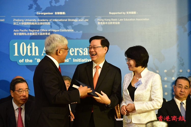李家超致辭時透露星期一會率領(lǐng)70名政府高層官員、備受關(guān)注的機(jī)構(gòu)和商界領(lǐng)袖到北京出席第三屆「一帶一路」國際合作高峰論壇。為期兩日的活動會有130多個國家與30多個國際組織的政府領(lǐng)導(dǎo)人及代表出席,香港很榮幸獲邀在論壇會議上發(fā)言,他還期待向世界各地商界與政界重量級人物講述香港的真實故事,特別是在「一帶一路」建設(shè)中重要作用,幫助建立為所有人創(chuàng)造美好共享未來的全球共同體。