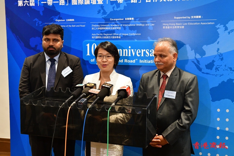 巴基斯坦管理科技大學(xué)法律與政策學(xué)院代理院長、主任Zadi,Kashif Imran,「一帶一路」國際研究院副院長梁美芬,澳大利亞墨墨爾本皇家理工大學(xué)暨國際爭端解決專家Sharma Rajesh接受提問。