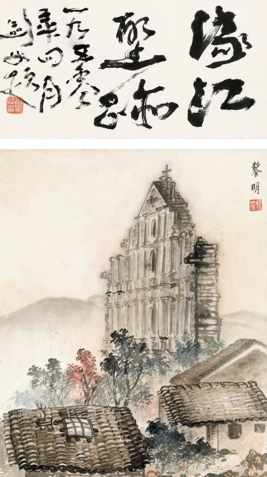 黎明作品《濠江聖跡(高劍父題)》局部。