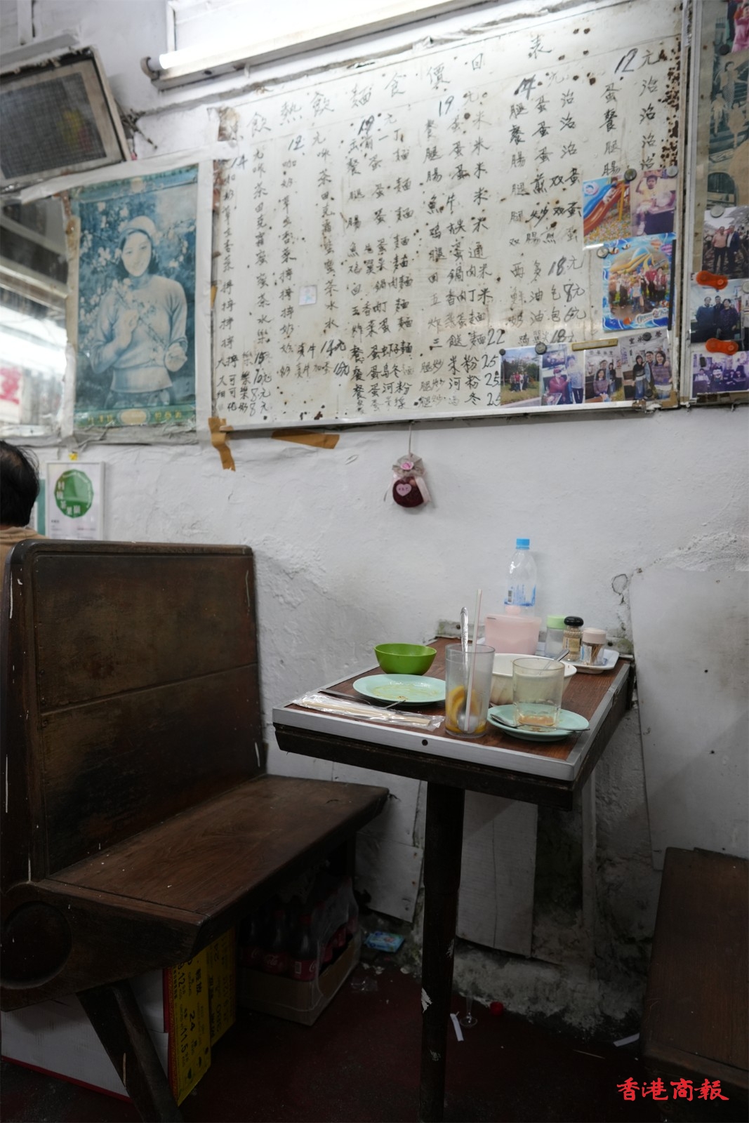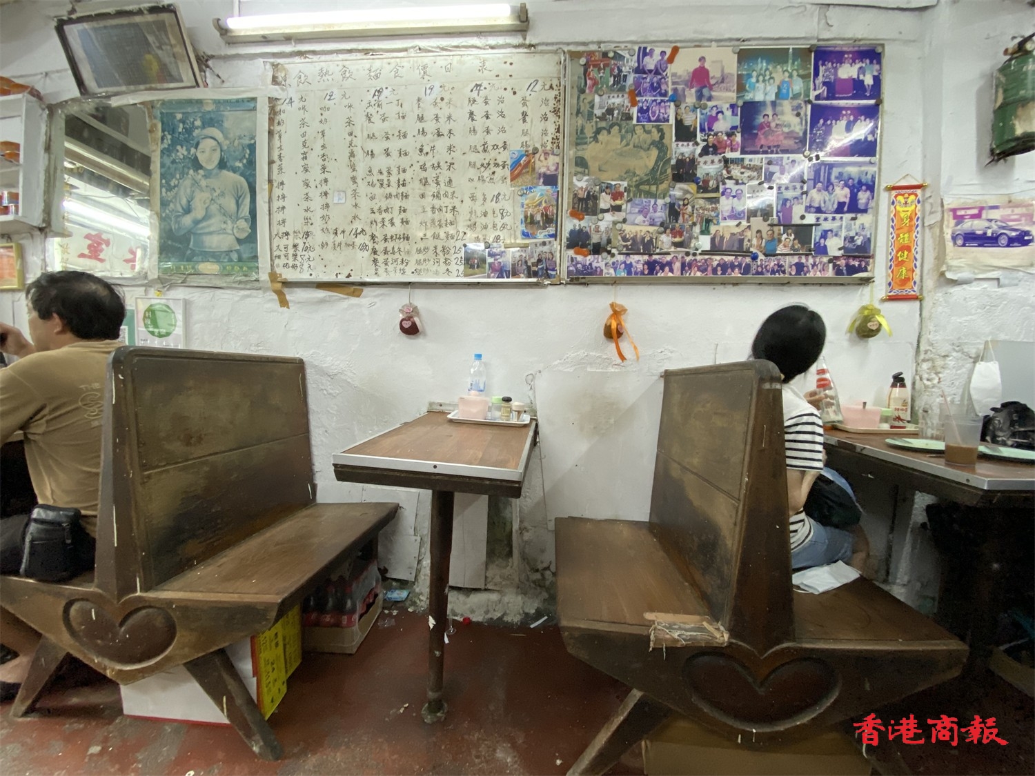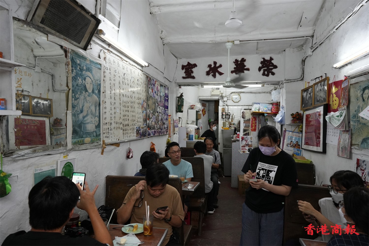屹立在茶果嶺超過一甲子的榮華冰室,像是一個把時間凍結(jié)在上世紀的空間。店內(nèi)數(shù)張木製卡座,是現(xiàn)任飲冰室主人的父親在二手家具店買來,自榮華冰室1962年開業(yè)沿用至今。榮華冰室這歷史悠久的建築物,電影《緣路山旮旯》也在此取景拍攝,這些在香港碩果僅存舊風味的冰室,隨著舊區(qū)重建也逐漸在年月中逝去。(記者 俊文/攝)