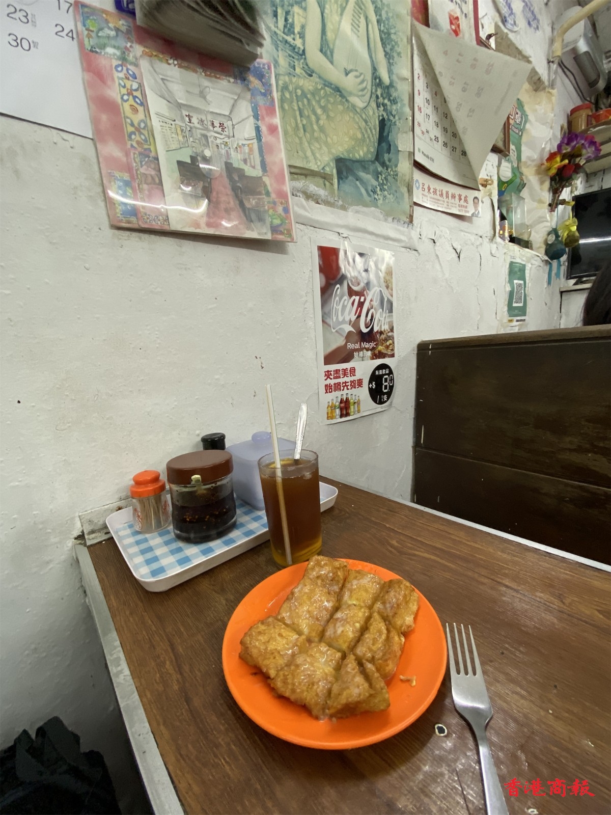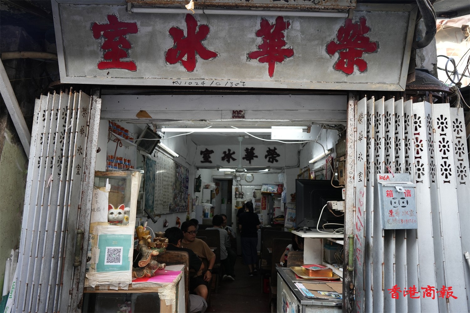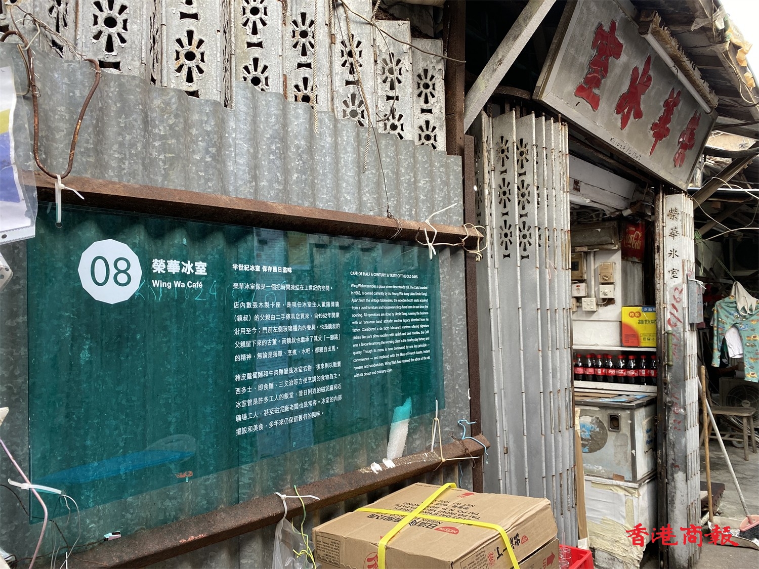 屹立在茶果嶺超過一甲子的榮華冰室,像是一個把時間凍結(jié)在上世紀的空間。店內(nèi)數(shù)張木製卡座,是現(xiàn)任飲冰室主人的父親在二手家具店買來,自榮華冰室1962年開業(yè)沿用至今。榮華冰室這歷史悠久的建築物,電影《緣路山旮旯》也在此取景拍攝,這些在香港碩果僅存舊風味的冰室,隨著舊區(qū)重建也逐漸在年月中逝去。(記者 俊文/攝)