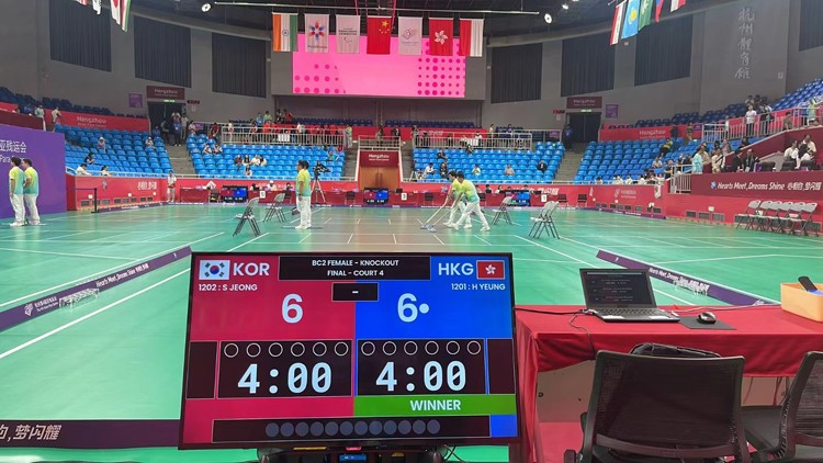 杭州亞殘運(yùn)硬地滾球賽事今日(25日)決出個(gè)人項(xiàng)目獎(jiǎng)牌得主,中國(guó)香港代表團(tuán)共奪得1金3銅。其中出戰(zhàn)女子個(gè)人BC2級(jí)賽事的楊曉林,上午先在4強(qiáng)以8比1擊敗日本的蛯沢文子,下午再於決賽迎戰(zhàn)韓國(guó)的程小榮,兩人激戰(zhàn)4局後,打成6比6平手,楊曉林於附加局勇挫對(duì)手,摘下港隊(duì)在今屆賽事的第3面金牌。