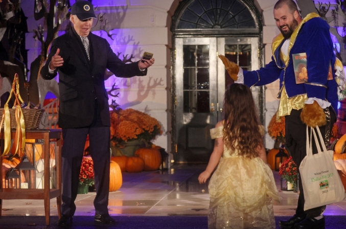 美國白宮當(dāng)?shù)貢r(shí)間10月30日舉行萬聖節(jié)派對(duì),小朋友穿上萬聖節(jié)服裝到白宮「Trick-or-Treat」,總統(tǒng)拜登把裝在小盒子的朱古力分發(fā)給小朋友。從事教師30多年的第一夫人吉爾則化上貓咪妝、戴上貓耳和貓尾,扮成她的寵物貓Willow,為小朋友朗讀故事《十個(gè)幽靈南瓜》,以及贈(zèng)送故事書。白宮表示,有約8000人參與萬聖節(jié)派對(duì)。