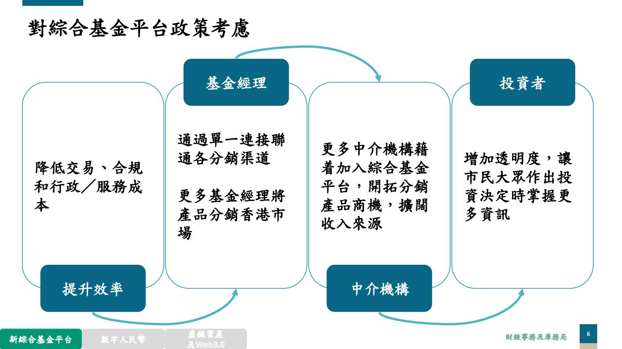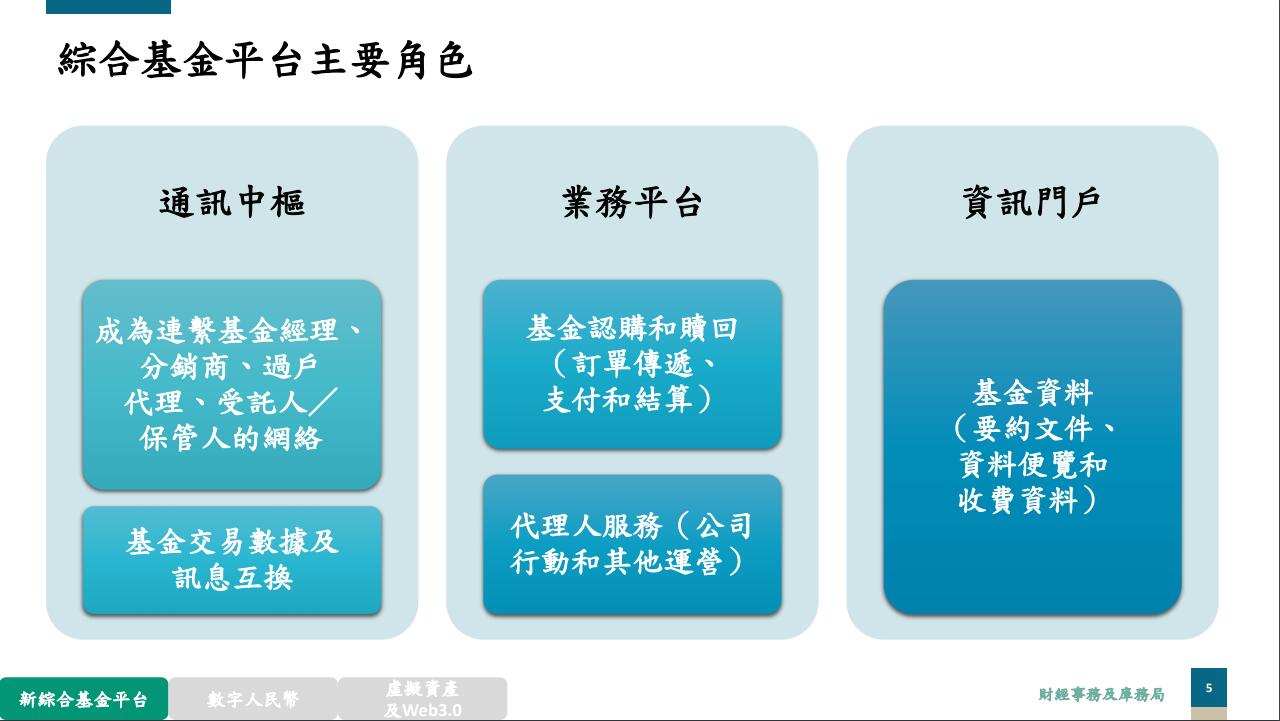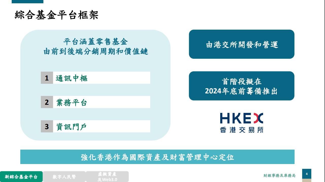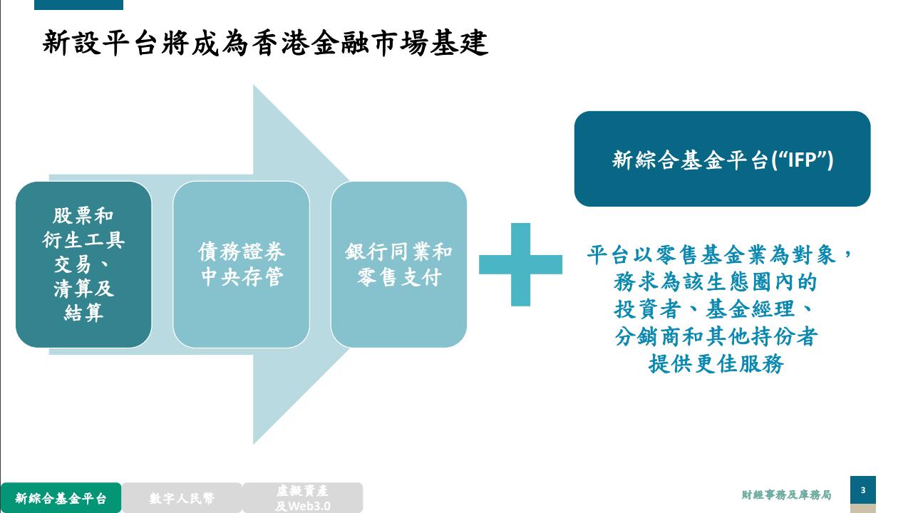 新的綜合基金平臺(tái)為香港金融市場基建,由香港交易及結(jié)算所有限公司(港交所)開發(fā)和營運(yùn),以零售基金業(yè)為對象,涵蓋由前到後端的分銷周期和價(jià)值鏈,務(wù)求為該生態(tài)圈內(nèi)的投資者、基金經(jīng)理、分銷商和其他持份者提供更佳服務(wù)。平臺(tái)將擔(dān)當(dāng)通訊中樞、業(yè)務(wù)平臺(tái)和資訊門戶的角色,以強(qiáng)化香港作為國際資產(chǎn)及財(cái)富管理中心的地位。