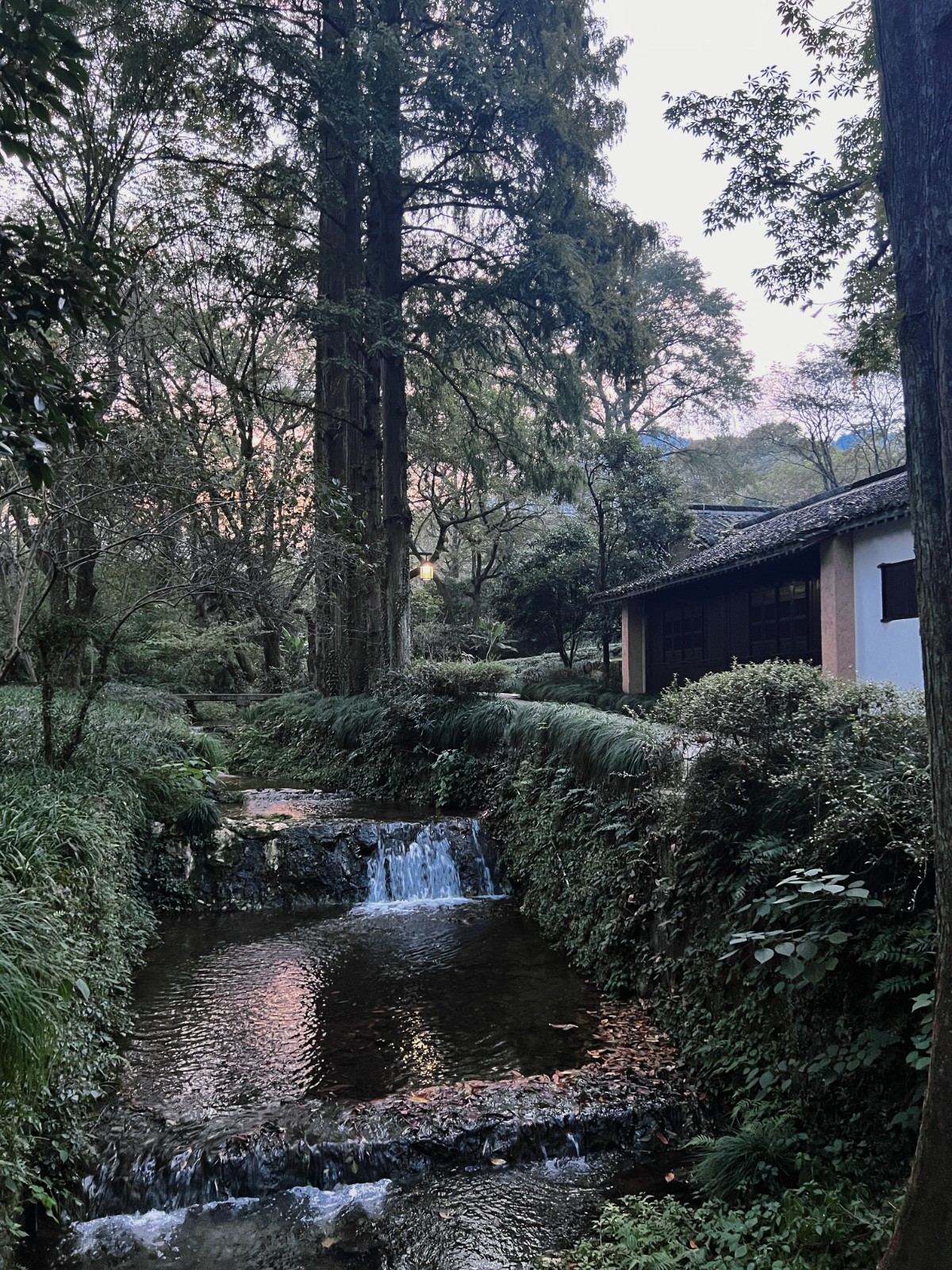 酒店周邊環(huán)境簡樸天然,小溪流水潺潺、古樹蒼翠。