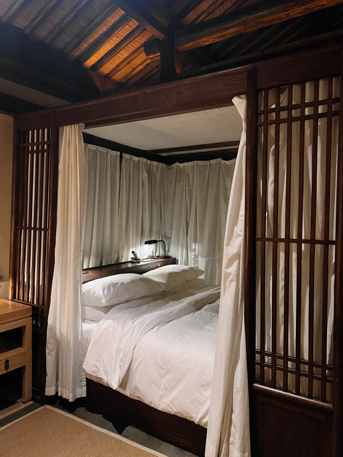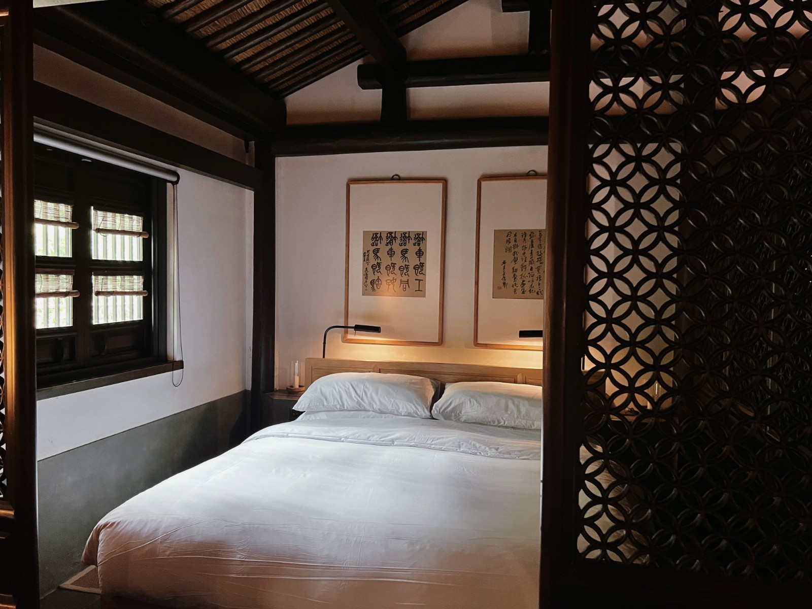 每間客房套房布局均有不同,部分房型配有傳統(tǒng)古床——拔步床。