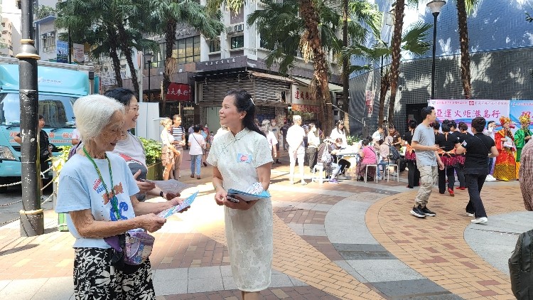 11月4日,香港島各界社會服務(wù)基金會、和美家庭心連心藝術(shù)團在上環(huán)文化廣場聯(lián)合舉辦「亞運火炬齊打卡 1210齊投票活動亅。