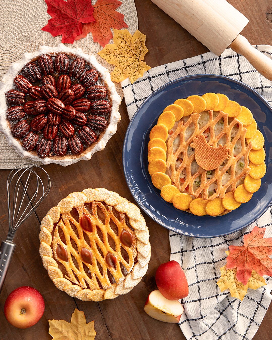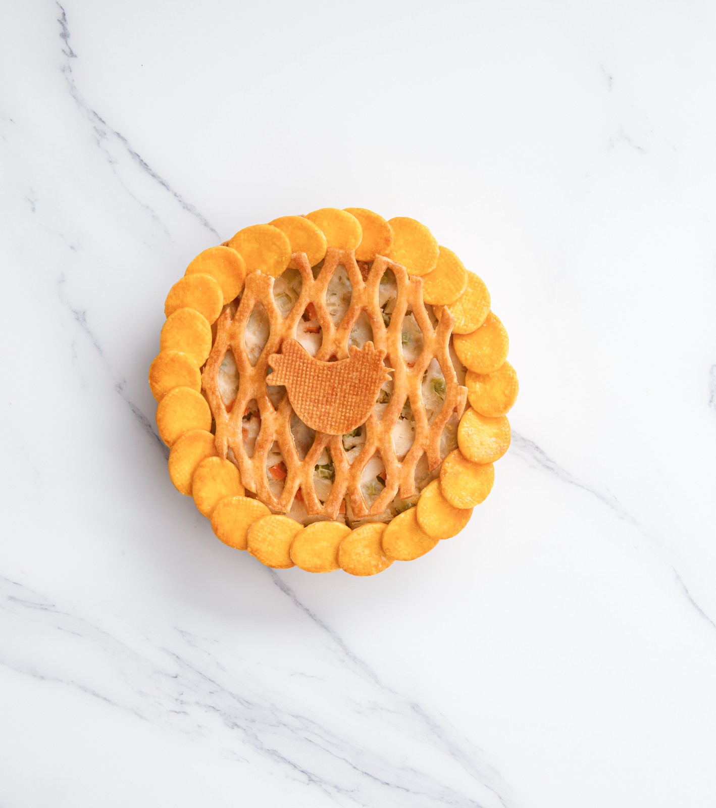 金黃酥脆的批皮搭配嫩滑多汁的雞肉及蔬菜餡料,批上經(jīng)典格紋及小雞主題造型餅乾作點綴,充滿節(jié)日氛圍。雞批散發(fā)濃郁的忌廉香氣,令食客彷彿置身於溫馨的感恩節(jié)氛圍中。