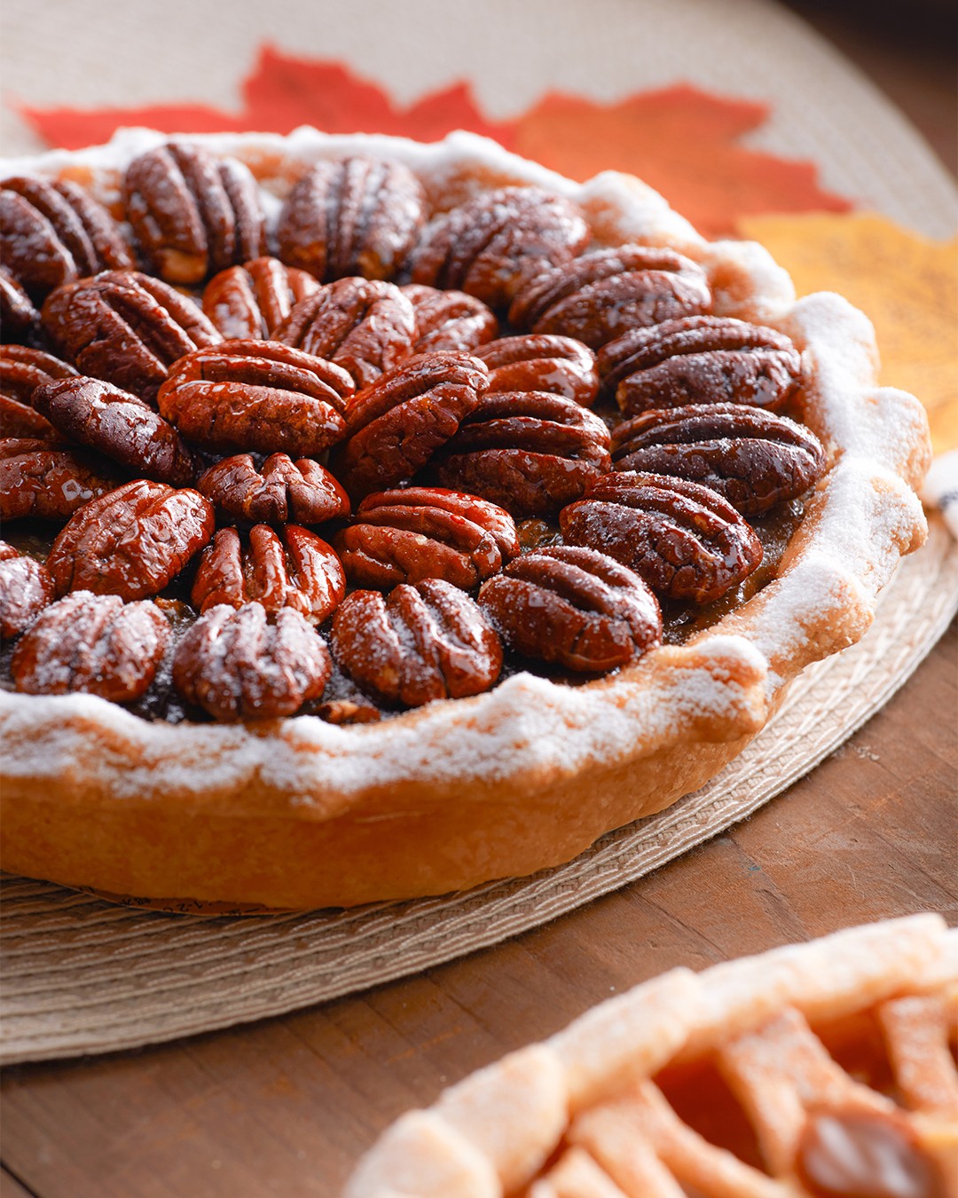 香甜的楓糖漿、濃香可口的碧根果仁碎和少許威士忌製成香滑軟糯的餡料,搭配金黃酥脆的批皮和面層的原粒焦糖碧根果仁作裝飾。