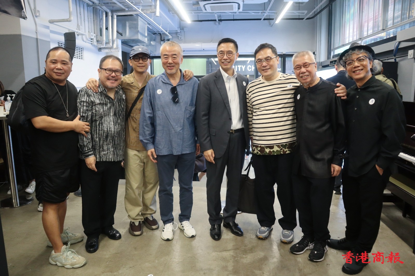 文化體育及旅遊局局長楊潤雄(右四)與6位海報設(shè)計師出席展覽開幕禮。記者 馮瀚文攝