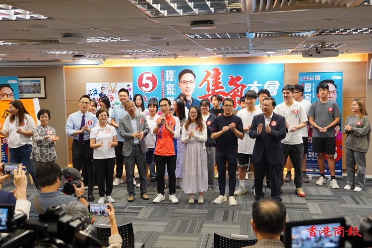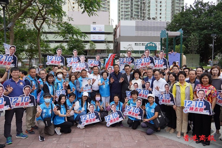 新民黨的陳志豪在將軍澳北出選,昨日在坑口舉行造勢大會,香港福建社團(tuán)聯(lián)會主席施清流,港區(qū)省級政協(xié)委員聯(lián)誼會主席鄭翔玲、會長施榮懷、副會長徐莉,香港廣西社團(tuán)總會創(chuàng)會會長譚錦球,香港海南社團(tuán)總會會長李文俊,香港河源社團(tuán)總會主席黃敬等15個(gè)愛國社團(tuán)領(lǐng)袖出席撐場。