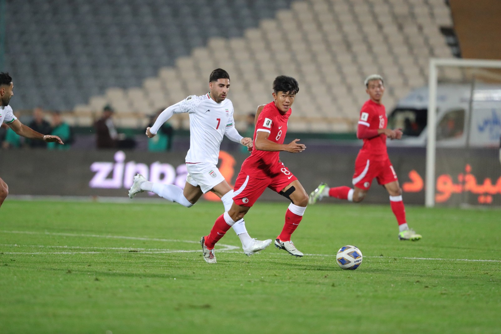 賽事在德黑蘭阿薩迪體育場舉行,港足開賽2分鐘即有首個(gè)攻門,只是陳俊樂禁區(qū)頂左腳施射高出。伊朗及後控制大局,並於12分鐘先開紀(jì)錄,莫希比左路傳中,阿斯蒙門前射入。3分鐘後,阿斯蒙接應(yīng)泰尼米的左路傳送,快射建功,個(gè)人梅開二度,伊朗上半場兩球在手。易邊後,落後的港足於62分鐘找到機(jī)會(huì),陳俊樂交出直線,艾華突入禁區(qū),可惜被回防的伊朗後衞解圍,無功而還。戰(zhàn)至末段,港足再失兩球,87分鐘,泰尼米單刀射入,將比數(shù)擴(kuò)大至3比0。補(bǔ)時(shí)階段,列些欣罰球直射破網(wǎng),伊朗主場以4比0大勝全場未有中目標(biāo)的港足。同組另一戰(zhàn),土庫曼主場以1比3不敵烏茲別克斯坦。