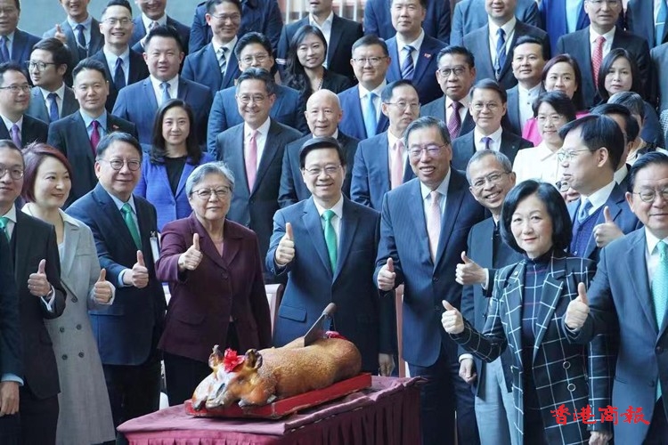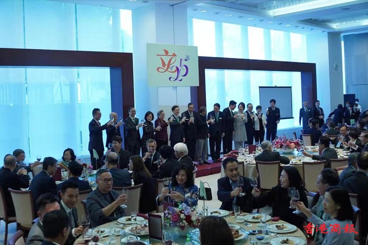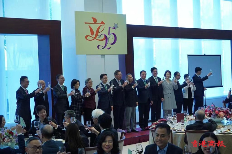 行政長官李家超今日(17日)率領(lǐng)多名官員到立法會出席午宴,與全體立法會議員慶祝立法會成立25周年。立法會前主席范徐麗泰、曾鈺成也有出席。眾人亦齊喊「1210齊投票」口號,呼籲市民為區(qū)議會選舉投票。立法會主席梁君彥致辭時(shí)表示,相信行政立法關(guān)係將邁向新臺階,希望議員不要墨守成規(guī),繼續(xù)幫助政府為本港謀發(fā)展。