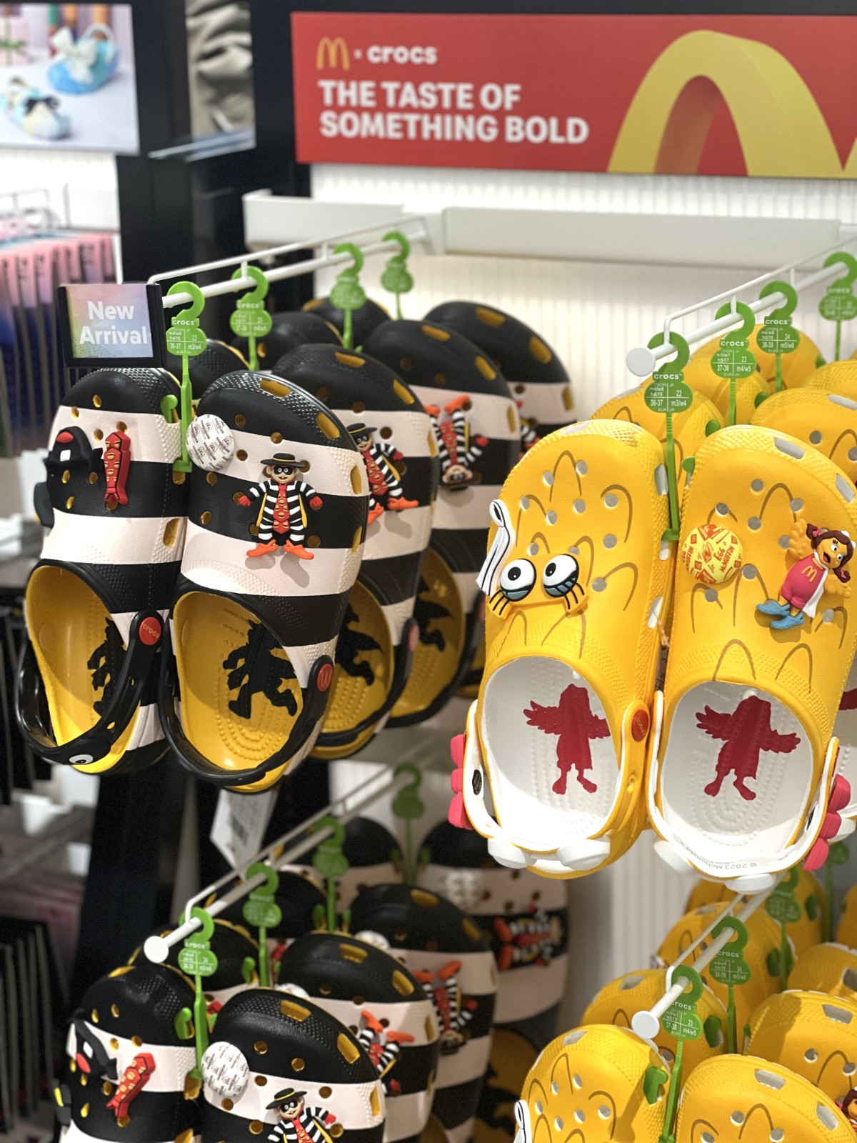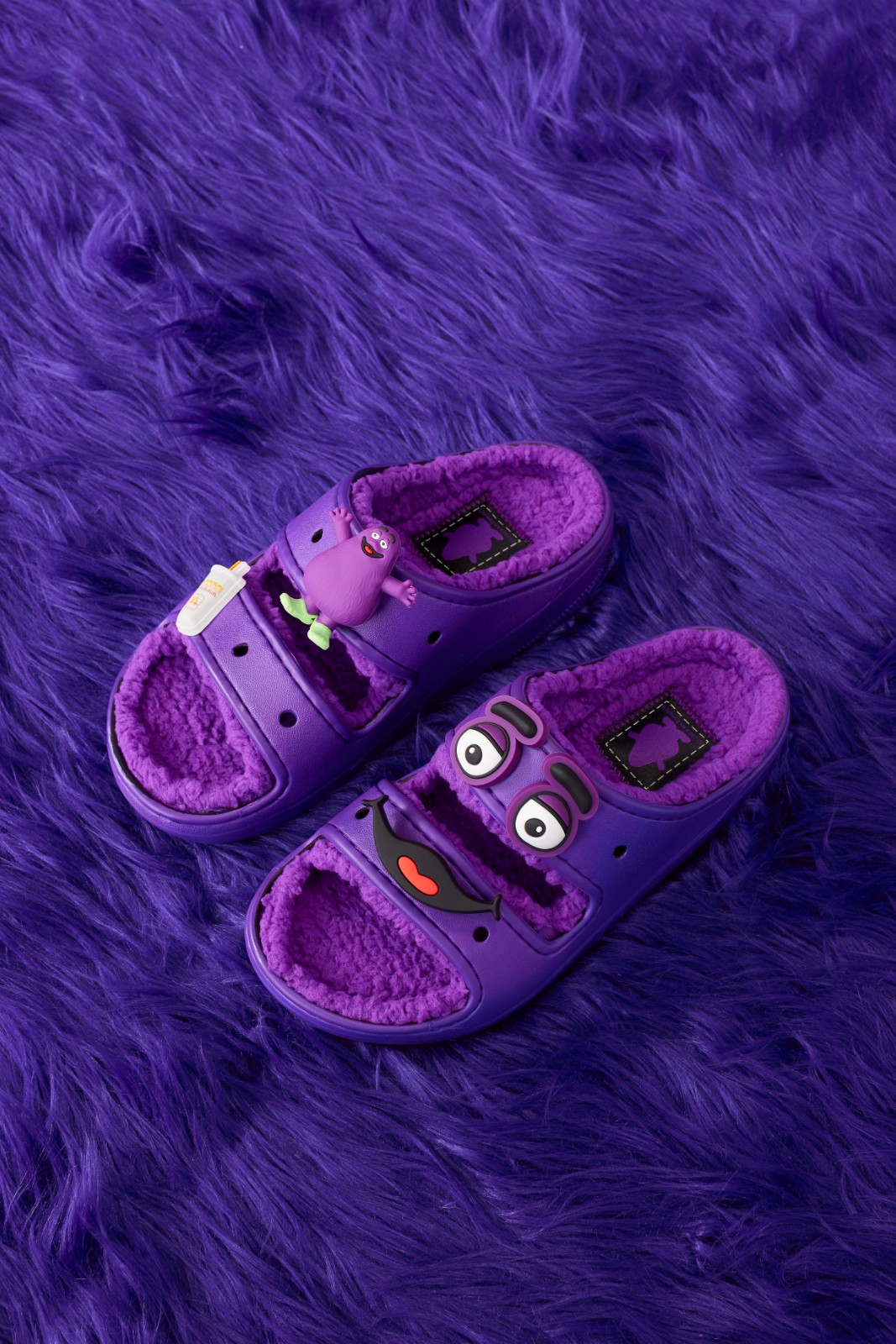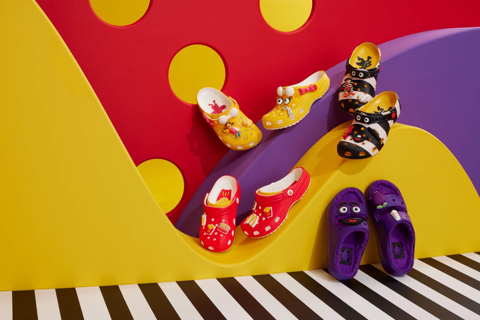品牌與McDonald’s首次推出聯(lián)乘系列,則能勾回童年回憶。聯(lián)乘款以麥當(dāng)勞角色為靈感,包括滑嘟嘟毛毛拖鞋、小飛飛及漢堡神偷經(jīng)典Clog,亦有經(jīng)典食物的Jibbitz套裝。