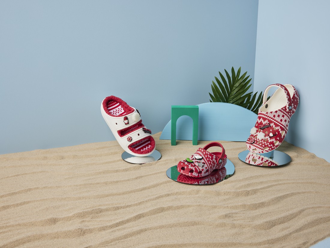 臨近佳節(jié),潮玩節(jié)日毛絨系列,Classic Holiday Sweater Clog備有成人到幼童尺碼,及成人可獨享Classic Cozzzy Holiday Sweater Sandal富有「醜毛衣」派對的精髓,適合穿著出席派對聚會。後者柔軟毛絨內(nèi)裏,採用了節(jié)日感的紅白針織毛衣圖案設(shè)計,風(fēng)格前衛(wèi)的增高鞋底提升時尚感;後者可大人小朋友一同享受節(jié)日的穿搭樂趣,與家人配搭節(jié)日主題的Jibbitz,令節(jié)慶感更加濃厚。
