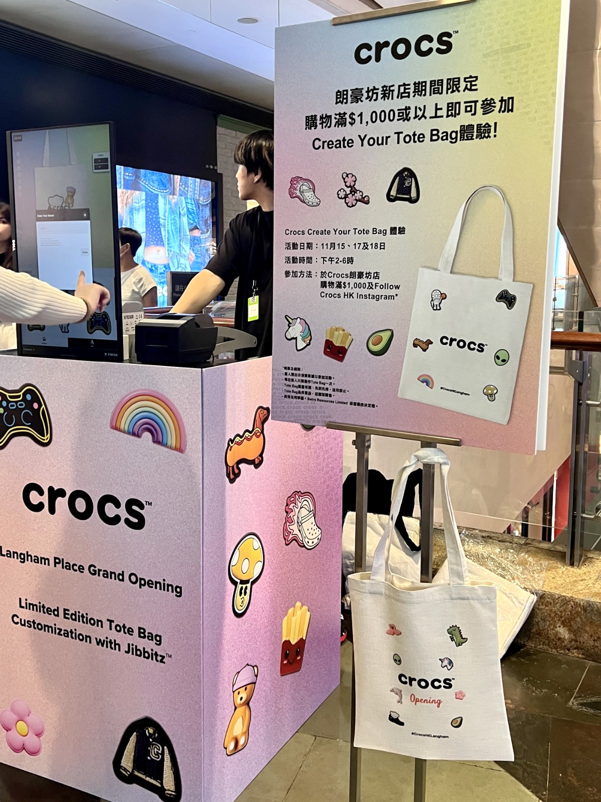 為慶祝新店開幕,即日起至12月10日,購物可升級成品牌會員及享折扣優(yōu)惠,追蹤品牌社交媒體可獲贈Jibbitz鞋飾一粒。11月18日,購物滿指定金額,可獲Personalized Tote Bag一個,以提供的圖案根據(jù)喜歡的方式組合創(chuàng)作Tote Bag,感受數(shù)碼創(chuàng)作的樂趣。 (記者、部分圖片:Janice)