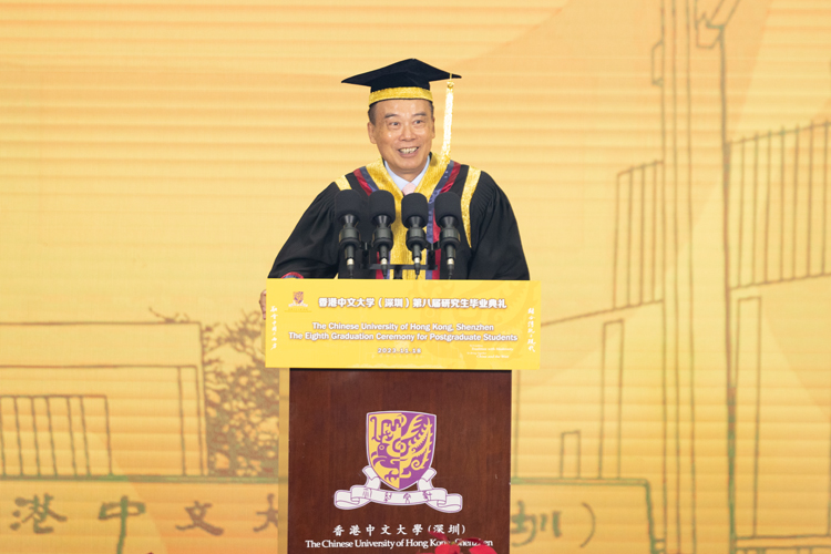 香港中文大學(深圳)理事會理事長、香港中文大學校長段崇智教授激勵畢業(yè)生終身學習,以知識貢獻人類進步。今年是香港中文大學的鑽禧校慶,慶典活動從今年年初開始,延續(xù)到2024年初,屆時也將迎來港中大(深圳)創(chuàng)校十周年。段崇智說,「在過去的十年裏,港中大(深圳)在各個方面取得了顯著的發(fā)展成就。今天,你們正式成為港中大(深圳)引以為傲的校友,希望你們繼續(xù)保持與母校的緊密聯(lián)繫,發(fā)揮校友網(wǎng)絡(luò)的影響力,履行社會責任。也希望你們牢記大學的校訓——『博文約禮』,不斷豐富個人品德修養(yǎng),終身學習,以知識貢獻人類進步?!?/p>