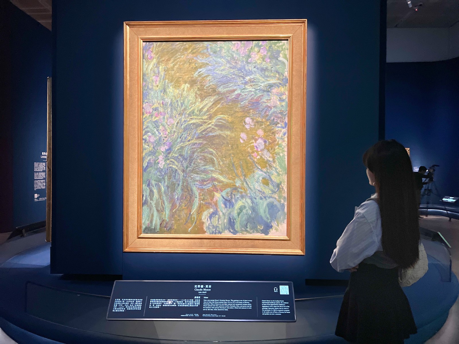 印象派是一個(gè)源於法國的藝術(shù)運(yùn)動(dòng),其突破了傳統(tǒng)繪畫風(fēng)格,強(qiáng)調(diào)光影變化、色彩表現(xiàn)力和瞬間的捕捉。作為代表人物莫奈擅長捕捉大自然的風(fēng)光。而鳶尾花是其最喜歡的花卉之一,他共繪製了約二十幅。王伊悠分向記者分享:「他甚至用妻子的名字命名自己種下的鳶尾花,以表達(dá)愛意。」創(chuàng)作本畫時(shí),莫奈的雙眼已患上白內(nèi)障,視力受損,畫作大量運(yùn)用濃郁的紫、藍(lán)、綠等顏色體現(xiàn)了極強(qiáng)的自然表現(xiàn)力。