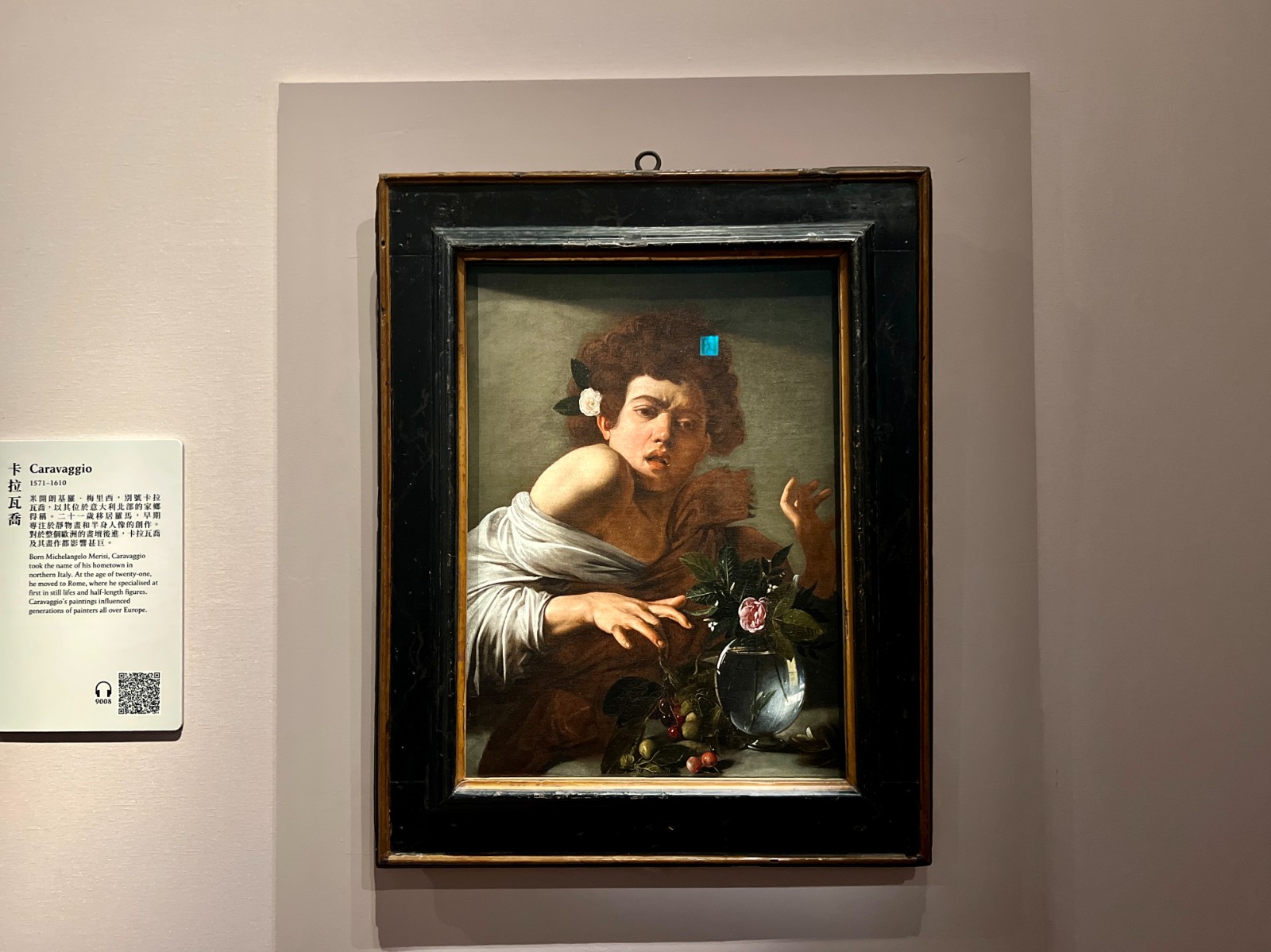 卡拉瓦喬《被蜥蜴咬傷的男孩》,約1594-1595年,以其精深造詣詮釋出少年傳神的表情,也隱喻著短暫感官享受後出乎意料的痛苦 ,右下角的玻璃花瓶透著窗戶的反光,細(xì)節(jié)之處值得反復(fù)觀摩。