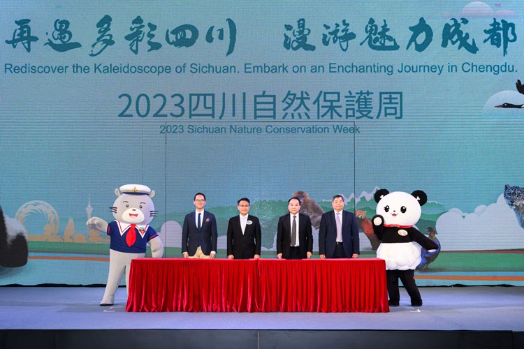 出席「2023四川自然保護(hù)周」啟動(dòng)儀式的嘉賓包括四川省林業(yè)和草原局局長(zhǎng)李天滿、漁農(nóng)自然護(hù)理署署長(zhǎng)梁肇輝,以及成都市公園城市建設(shè)管理局機(jī)關(guān)黨委書記周靈。海洋公園公司代表包括主席龐建貽、行政總裁黃嗣輝、副行政總裁暨首席財(cái)務(wù)總監(jiān)陳善瑜,以及香港海洋公園保育基金主席陳晴。