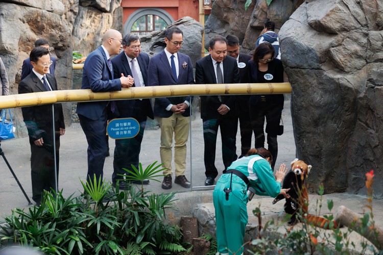 一眾主禮嘉賓於海洋公園「亞洲動(dòng)物天地」參觀小熊貓護(hù)理訓(xùn)練。