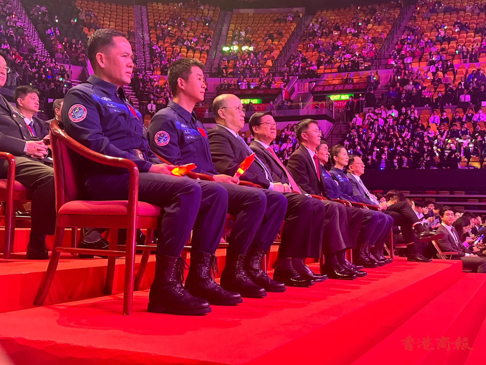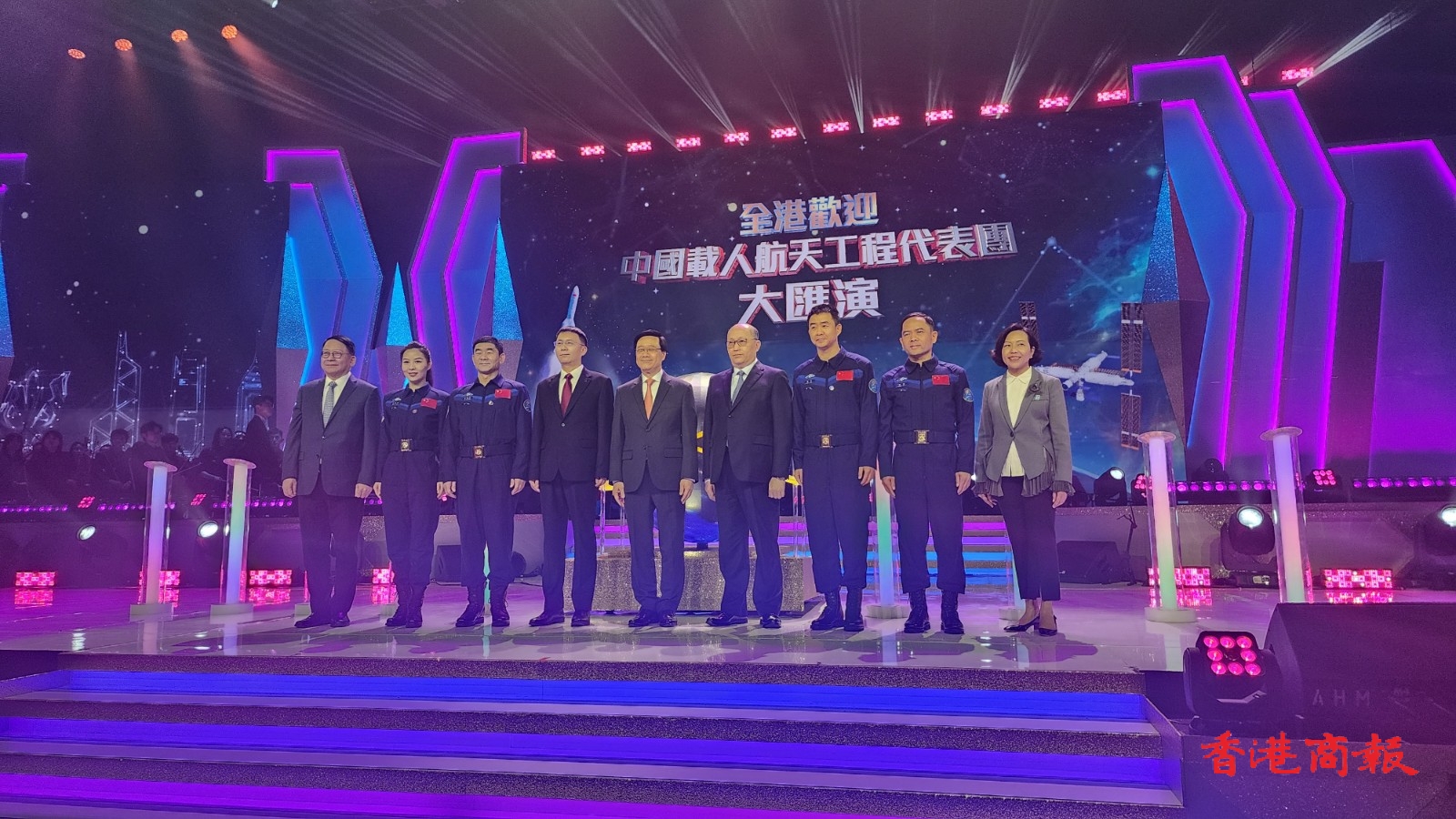 11月29日,中國載人航天代表團(tuán)展開第二日訪港行程。當(dāng)日下午,代表團(tuán)出席在紅館舉行的「全港歡迎中國載人航天工程代表團(tuán)大匯演」。(圖:木子攝)