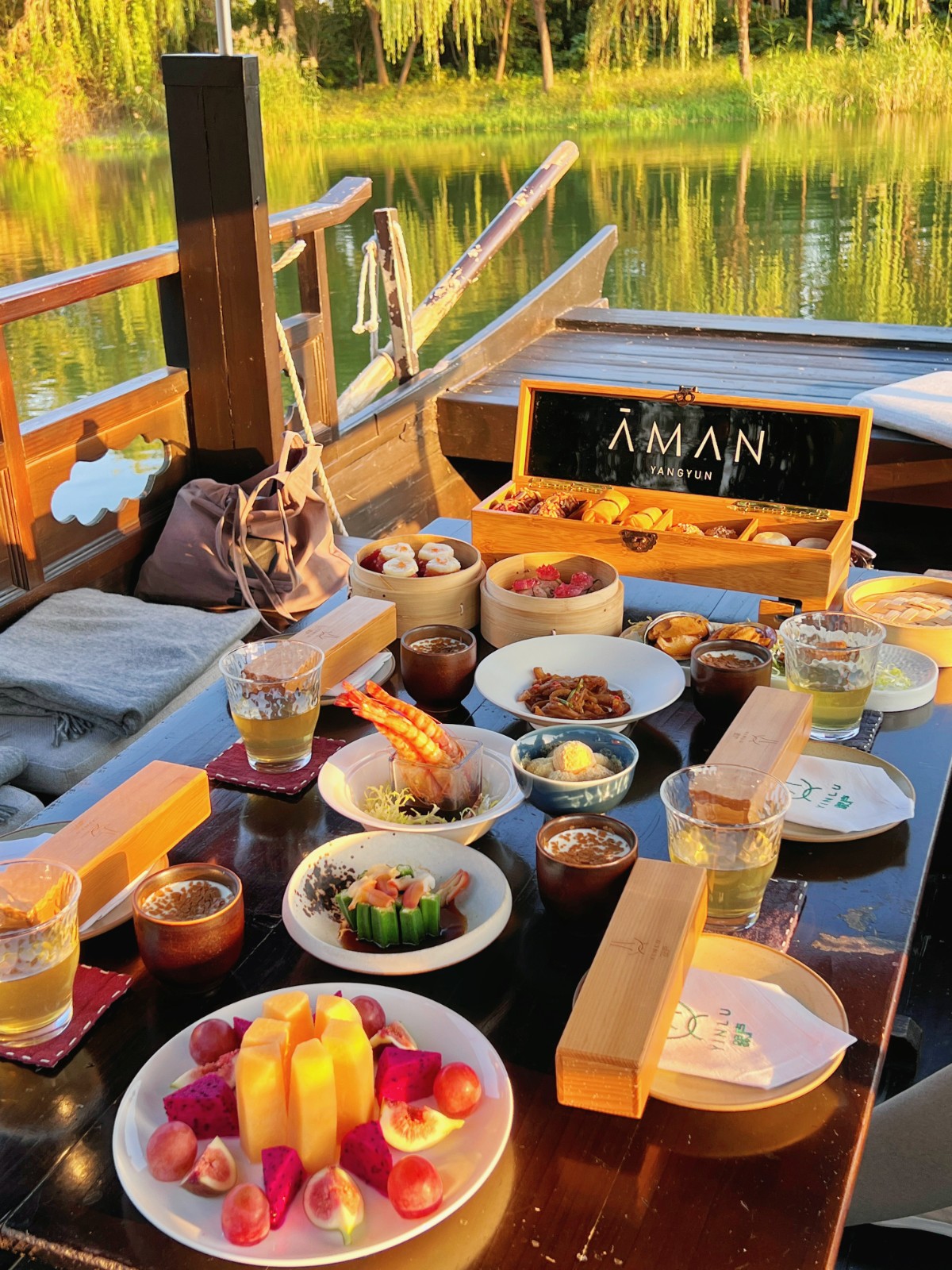 若想體會寧靜閒適的生活,也可來一場悠閒的遊船下午茶。包下一艘船,在幽靜、平靜如鏡的青登河看著夕陽、蘆葦,聽著鳥兒婉轉的叫聲、風吹過的沙沙聲,愜意又浪漫。下午茶主要以中式點心為主,有秘製撈拌五頭鮑、松茸珍菌水晶福袋、脆杏紫薯粿,亦有富地方特色的上海鮮肉月餅、江西豆粉團等,每款均精緻開胃,賞美景同時嘗美食。
