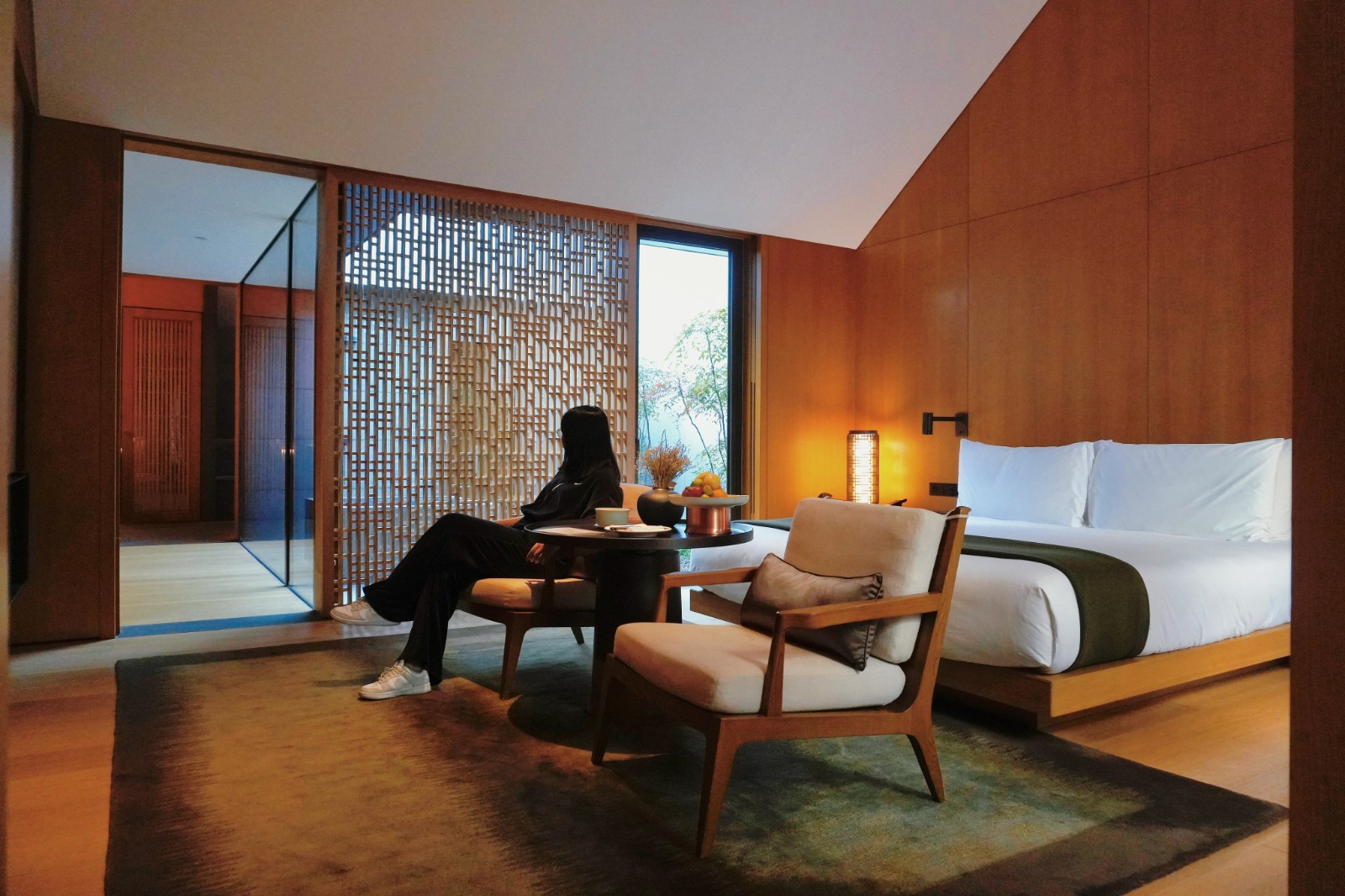 數10幢承載歲月滄桑的老宅由匠人團隊拆分、編號,就連石材、石雕被一一拆卸。運抵上海後,有26座老宅被重組,13棟為酒店的四臥房,並由酒店設計大師Kerry Hill將老宅特質最大限度保留,如富明清時期特色的石窗雕花,配合綠意盎然的庭院,充滿傳統(tǒng)韻味與現代極簡風格。走出老宅,即能看見香樟樹王,千年古樹百年老宅繼續(xù)見證世代繁衍與安居。