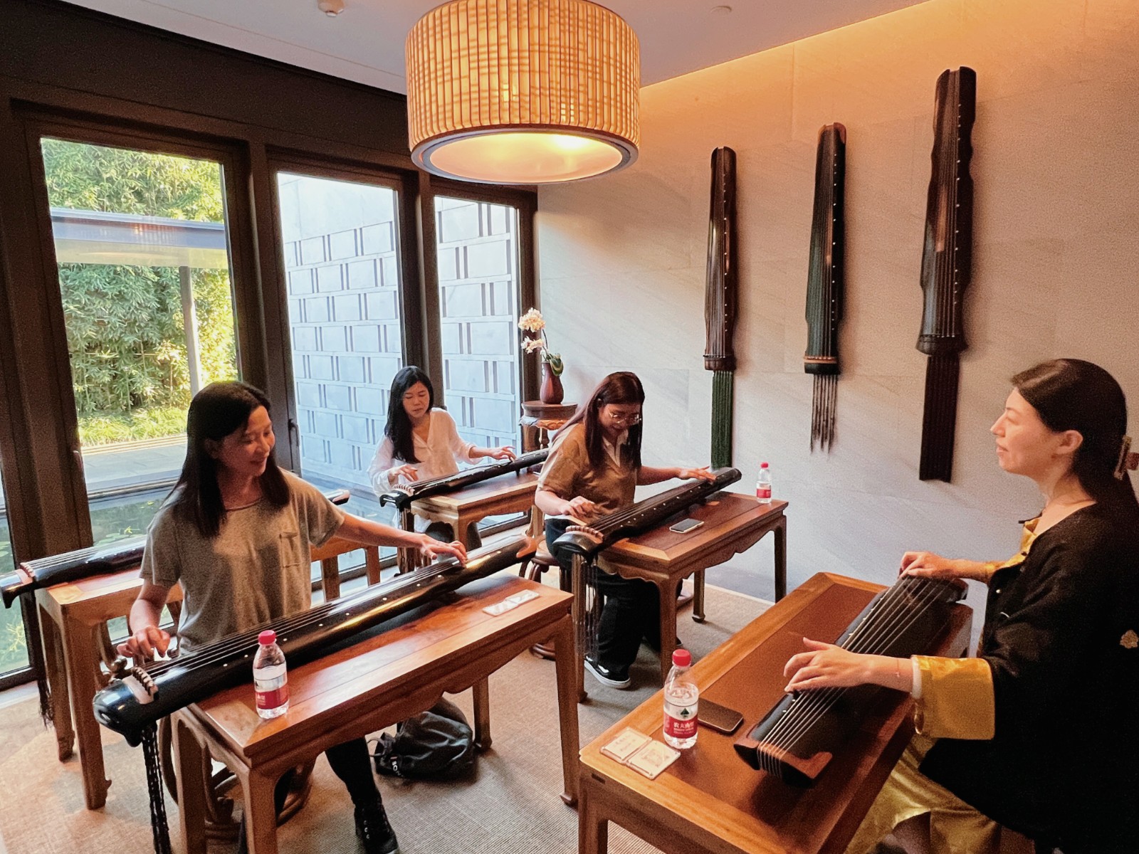 佇立於香樟樹王旁、位處酒店正中的楠書房是26座院落其中之一,建築前身為古代私塾,如今以現代方式演繹古代文人士大夫書房文化,並定期上演崑曲表演。住客可在書房後、清幽的茶室中品茶養(yǎng)性、習古琴、書法、茶道等,進行文化體驗。筆者學習了中國文人最愛的樂器古琴,上手入門難度不高,一個小時間就能學懂基本知識,並能彈奏一曲。聽著自己彈出空靈、清冷的琴音,調節(jié)心境,陶冶性情。