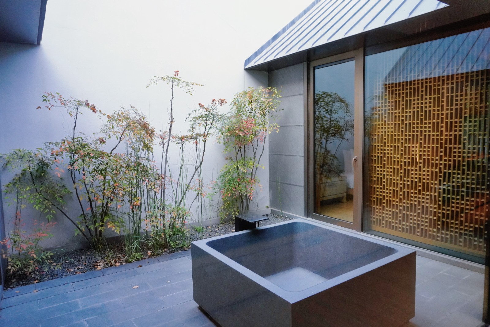 除古宅外,亦可入住古今融合、簡約精緻的新式套房,每間皆有兩個露天私密庭院,對應中國傳統(tǒng)建築的「天井」,空間採光明亮通透、綠意繞樑。