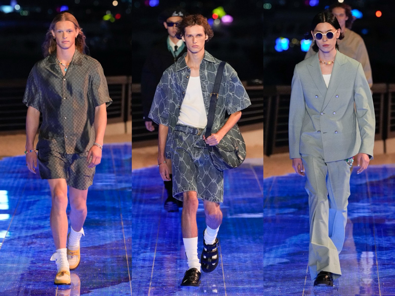 今季男裝與上一季相比大幅削減了標(biāo)誌性的棋盤格與老花元素,從嚴(yán)肅著裝轉(zhuǎn)向更為年輕的款式剪裁,以及更加花俏的設(shè)計(jì)裝飾。豐富多樣的夏威夷風(fēng)情和海洋元素融入服裝設(shè)計(jì)中,如潛水服、沖浪服等,讓整個(gè)系列散發(fā)出一股度假的閒適氣氛,令觀眾恍如置身於夏威夷的美麗海灘。