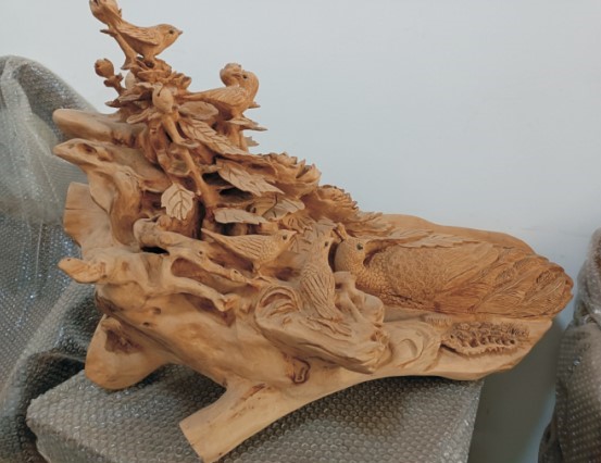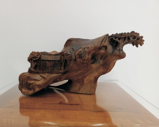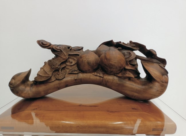 該金絲楠木工藝品的木紋紋路恍如佛像,散發(fā)著佛光,非常罕見,是談銘欽的珍藏之一。