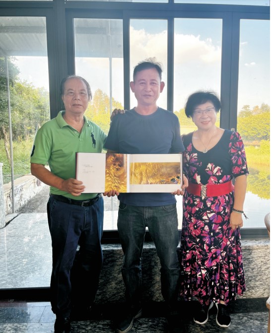 藝術家蘇子雄(左)夫婦與金絲楠木藏家談銘欽(中)。