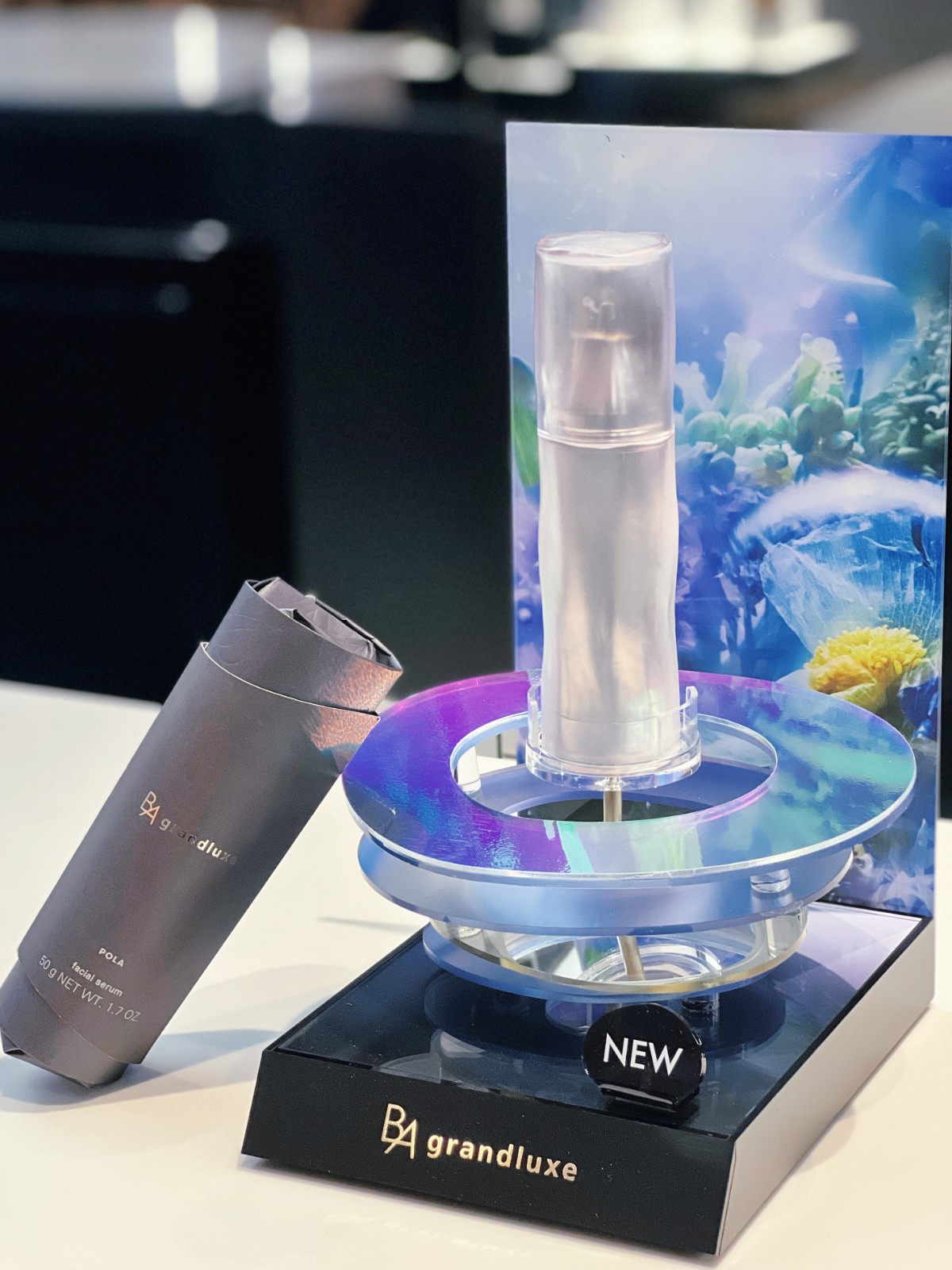 B.A極光珠耀精華液為系列的第4代精華液,從2006年第一代的精華液B.A GRANDLUXE推出至今,以「Bio-Active生物活性理論」為美肌基礎(chǔ)。品牌的研究團(tuán)隊(duì)最新發(fā)現(xiàn),於細(xì)胞休止期下會產(chǎn)生較多膠原蛋白VI,是主宰肌膚緊致的關(guān)鍵,有效激活細(xì)胞自體吞噬循環(huán),促進(jìn)分解細(xì)胞內(nèi)聚積的老化廢棄物,增加膠原蛋白、透明質(zhì)酸。精華液首次採用於不同時(shí)間釋放水分的護(hù)膚配方,含有保濕成分的液態(tài)美容成分以「快速」膠囊即時(shí)釋放液態(tài)保濕成分,立即滲透滋潤肌膚,「穩(wěn)定」膠囊會緩慢地釋放其他美容成分,讓肌膚於不同時(shí)間仍能吸收營養(yǎng)。產(chǎn)品同時(shí)加入「彈力反射配方」,平衡角質(zhì)層結(jié)構(gòu),令角質(zhì)層柔軟。高效膨脹配方凝聚大量透明質(zhì)酸,縮細(xì)後滲透到肌膚中,提升肌膚的緊致與彈性。