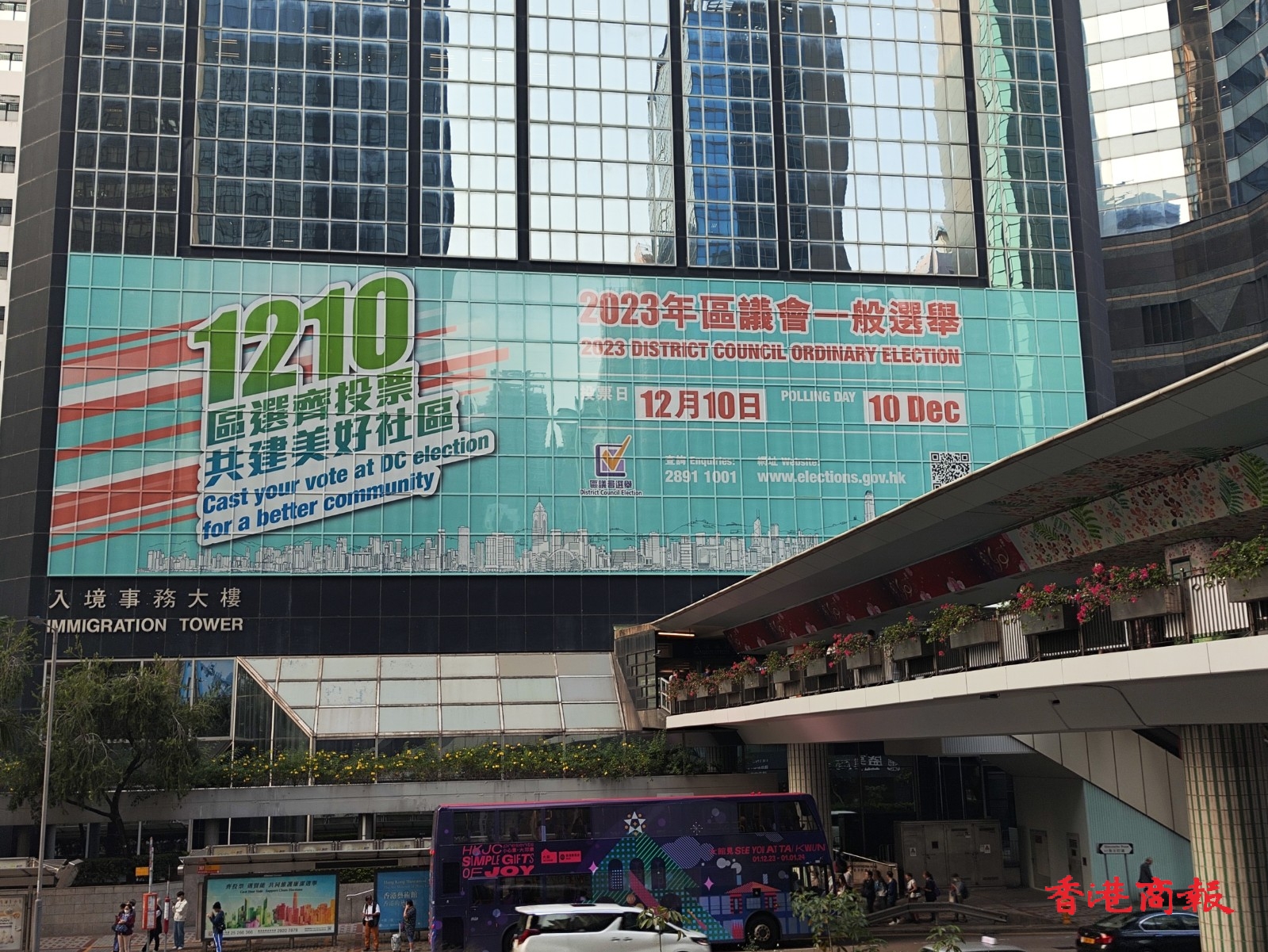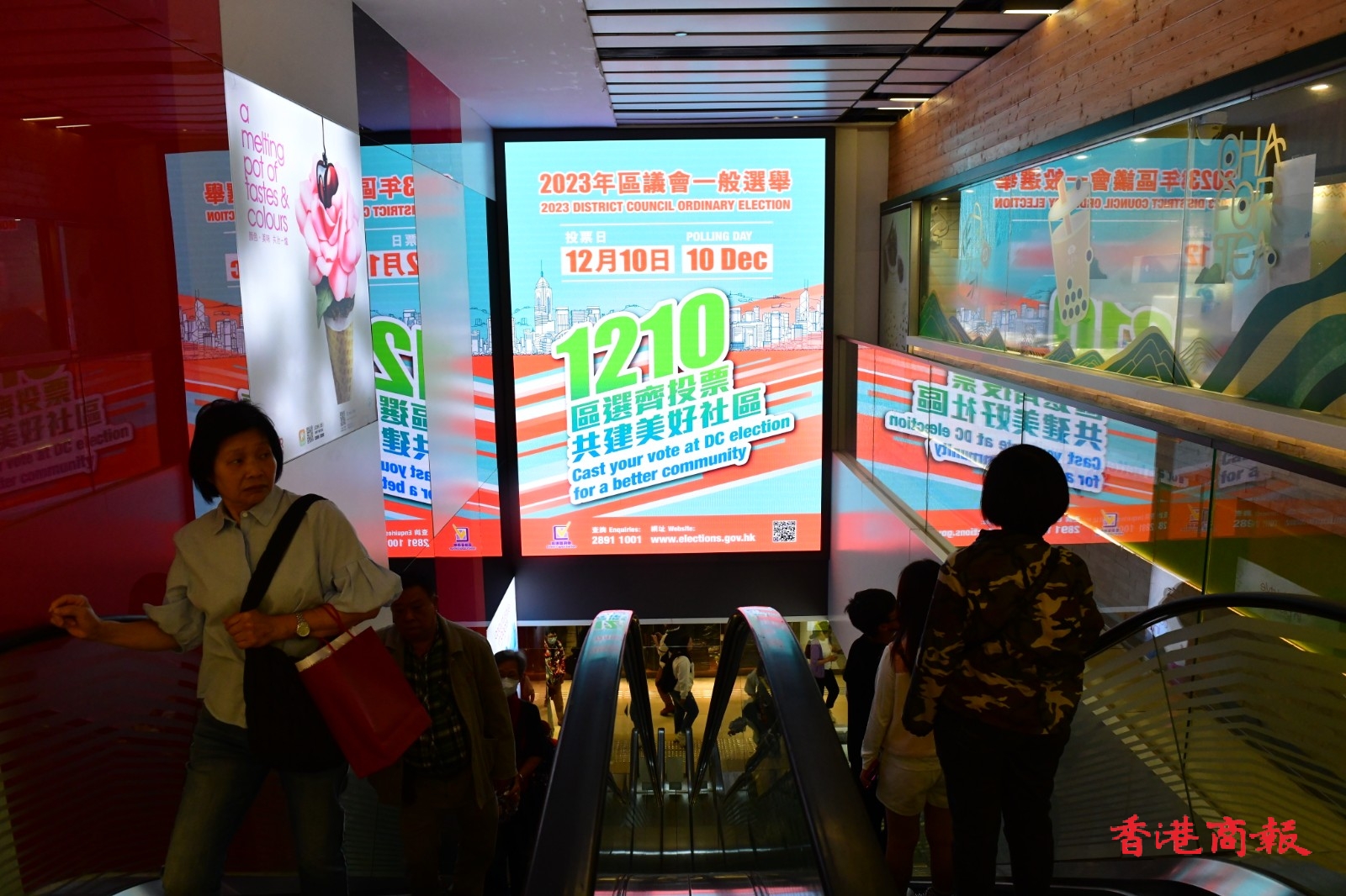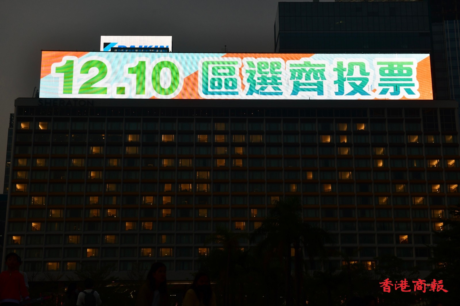 距離區(qū)議會(huì)選舉投票日不足一周,選舉已進(jìn)入大直路,當(dāng)局繼續(xù)加強(qiáng)宣傳攻勢,在港、九、新界各區(qū)各處均張目可見關(guān)於區(qū)選的宣傳廣告,包括維港兩岸大廈外牆、西九龍文化區(qū)M+博物館的巨型彩屏、上環(huán)信德中心旁及灣仔入境事務(wù)大樓外牆的巨型廣告牌、各大商場內(nèi)、港鐵站內(nèi)、海底隧道兩旁,以及巴士和電車等公共交通工具,一直貼心地「溫馨提示」各位選民,記得1210齊投票。(記者蔡啟文、崔俊良 攝)