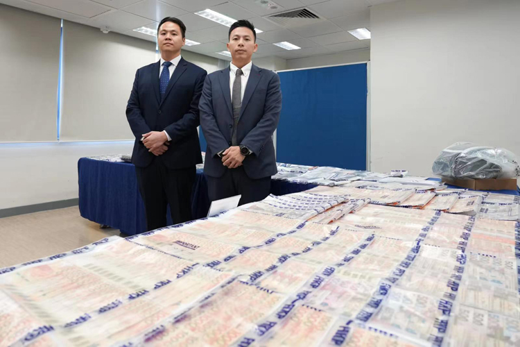 另外,警方亦成功搗破集團(tuán)位於荃灣區(qū)的涉案電話中心,檢獲大量文件、電話卡和銀行卡等證物。(記者 區(qū)天海)