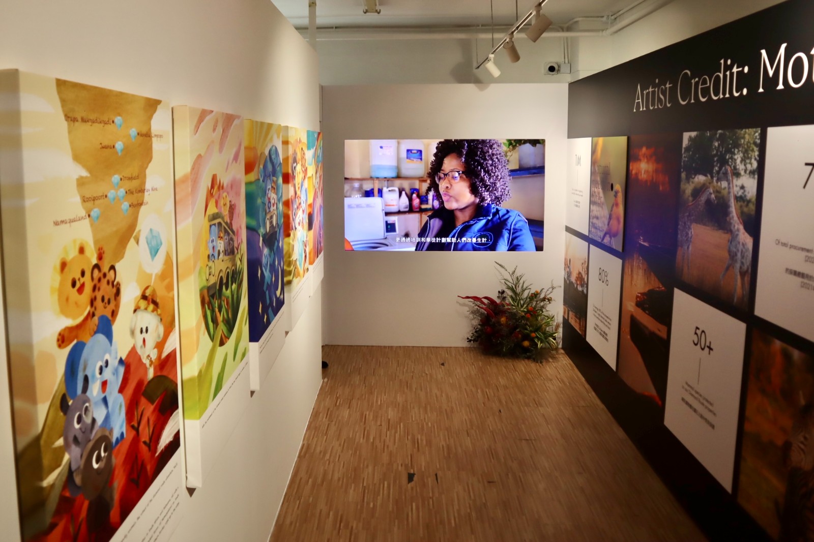 核心展覽區(qū)域?qū)⒘钣^眾深入了解品牌的可持續(xù)發(fā)展之路,關(guān)注環(huán)保與開採鑽石的緊密聯(lián)繫。參觀者彷彿置身於天然鑽石之源的非洲,探訪塑造鑽石的魅力之地。展覽現(xiàn)場設(shè)有即時攝像設(shè)備,讓參觀者能夠親眼目睹野生動物在自然環(huán)境中悠閒生活的畫面,感受身臨其境的體驗。此外,該區(qū)還展示了香港知名插畫家 Oh Mankee 的作品。他精細(xì)地描繪了生活在品牌設(shè)置的自然保護(hù)區(qū)內(nèi)的野生動物,展示了大自然與鑽石之間的淵源。