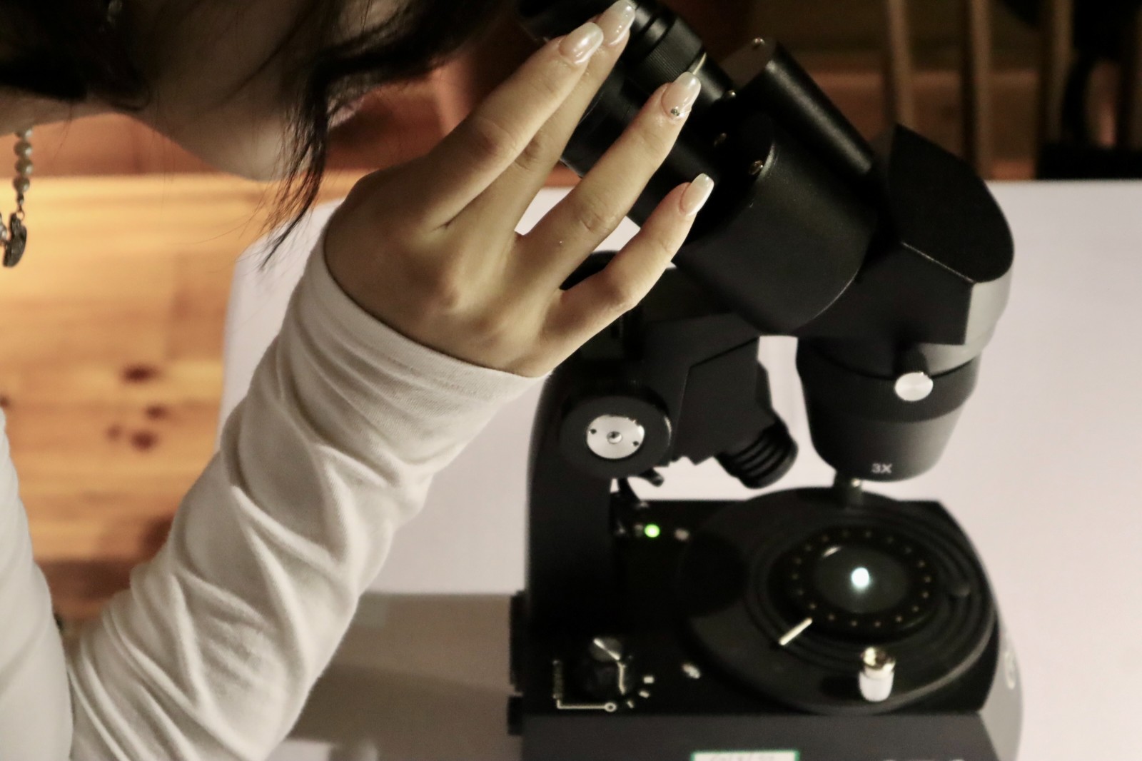 預(yù)展現(xiàn)場由兩位鑽石專家呈現(xiàn)了一場天然鑽石鑒賞工作坊,引領(lǐng)參加者逐步拆解天然鑽石的奧秘。