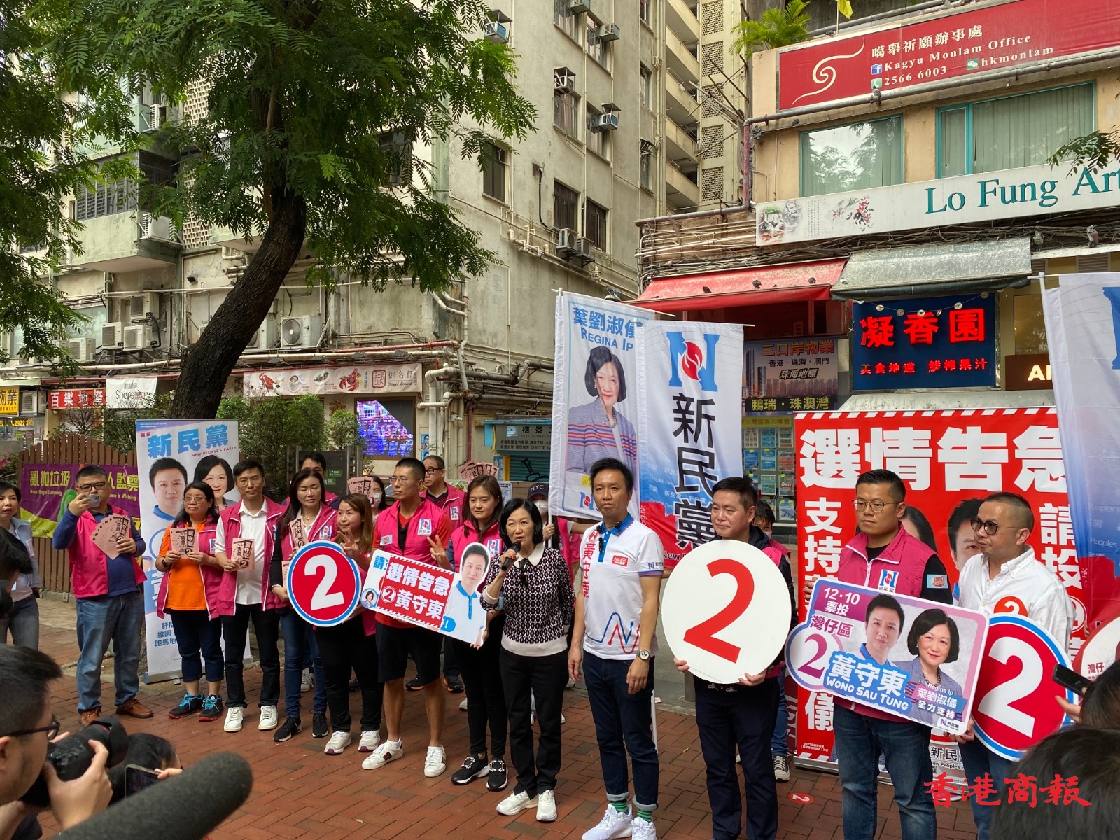 區(qū)議會(huì)選舉|【圖片新聞】新民黨候選人黃守東衝刺拉票 葉劉撐場(chǎng)