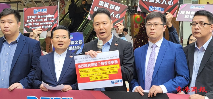 民建聯(lián)立法會(huì)議員周浩鼎、陳勇、顏汶羽等今午(14日)到金鐘統(tǒng)一中心外請(qǐng)願(yuàn),抗議法國(guó)和德國(guó)外交部頒發(fā)所謂「人權(quán)和法治獎(jiǎng)」予被控涉嫌干犯香港國(guó)安法罪行的鄒幸彤,民建聯(lián)對(duì)此表示堅(jiān)決反對(duì),並以予強(qiáng)烈譴責(zé),及後德國(guó)駐港領(lǐng)事館派出代表接收請(qǐng)願(yuàn)信。民建聯(lián)稱,相關(guān)行為是對(duì)香港國(guó)安法的污衊,並嚴(yán)重?fù)p害法治精神,民建聯(lián)敦促相關(guān)國(guó)家尊重法治精神,立刻停止一切政治操弄,停止干預(yù)香港事務(wù)。