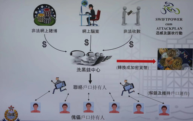 警方過去兩日展開代號(hào)「迅威」及「謀攻」行動(dòng),搗破一個(gè)洗黑錢集團(tuán),涉嫌為電話和網(wǎng)上求職等騙案,以及非法收數(shù)及網(wǎng)上賭博等非法活動(dòng)的犯罪得益,提供一條龍洗黑錢服務(wù),安排傀儡戶口、收取騙款和轉(zhuǎn)作加密貨幣,企圖令警方難以追查。